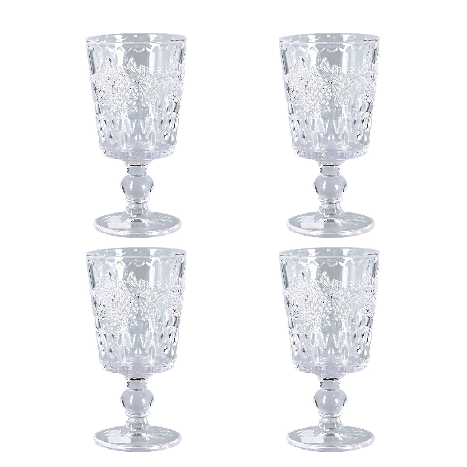 ALERIA 4’lü Cam Kadeh Seti, 290 cc hacmi ve şeffaf camın klasik zarafetiyle sofranıza ışıltı katıyor. Kabartmalı yüzeyi ve zarif ayaklı tasarımı sayesinde, su, şarap veya kokteyl sunumlarınızı estetik bir keyfe dönüştürür.