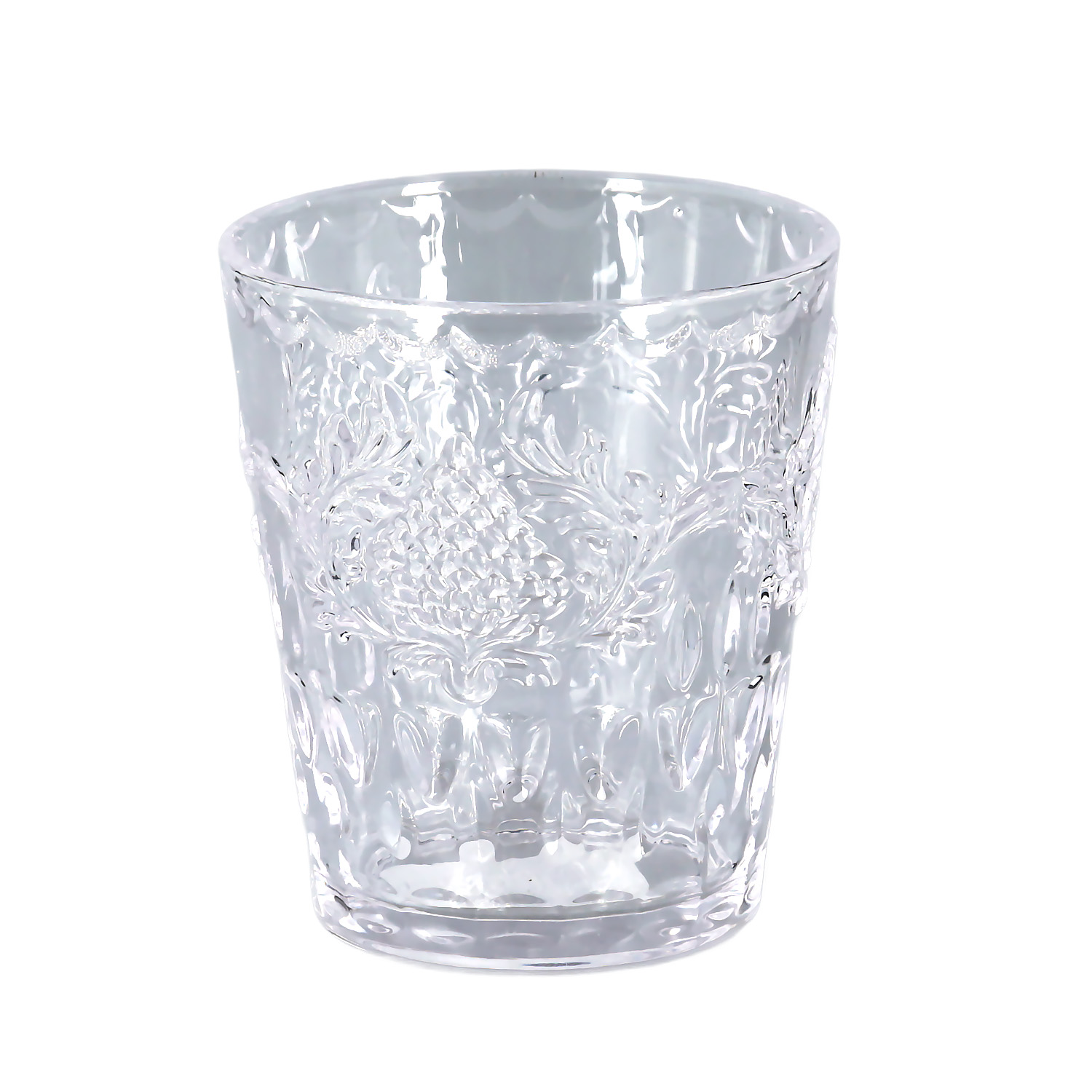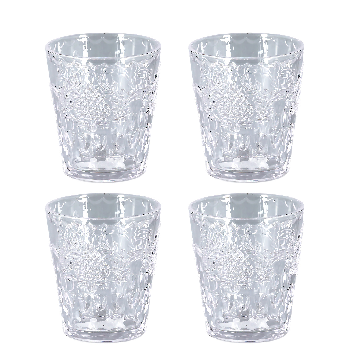 Bardaklar, klasik ve zamansız şeffaf renktedir. Silindirik formdaki gövdesi, ışığı güzelce yansıtan kabartmalı ve dokulu bir yüzeye sahiptir.