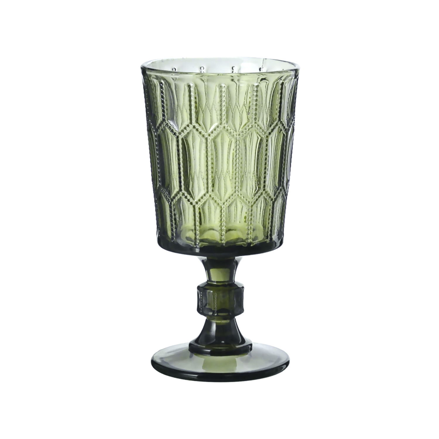 Kadehler, doğal ve tazeleyici yeşil rengindedir. Kadeh kısmı kabartmalı ve dokulu bir yüzeye sahipken, ince ve zarif ayak detayı sunuma şıklık ve yükseklik katar.