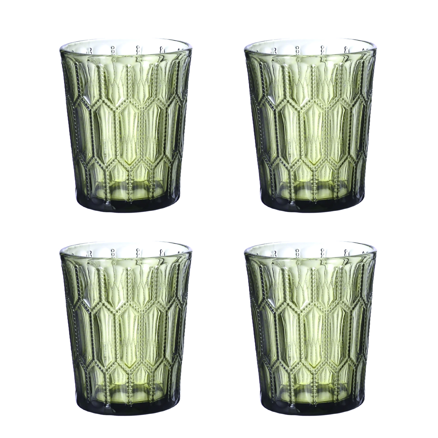 Bardaklar, doğal ve tazeleyici yeşil rengindedir. Silindirik formdaki gövdesi, ışığı güzelce yansıtan geometrik ve kabartmalı bir yüzeye sahiptir.