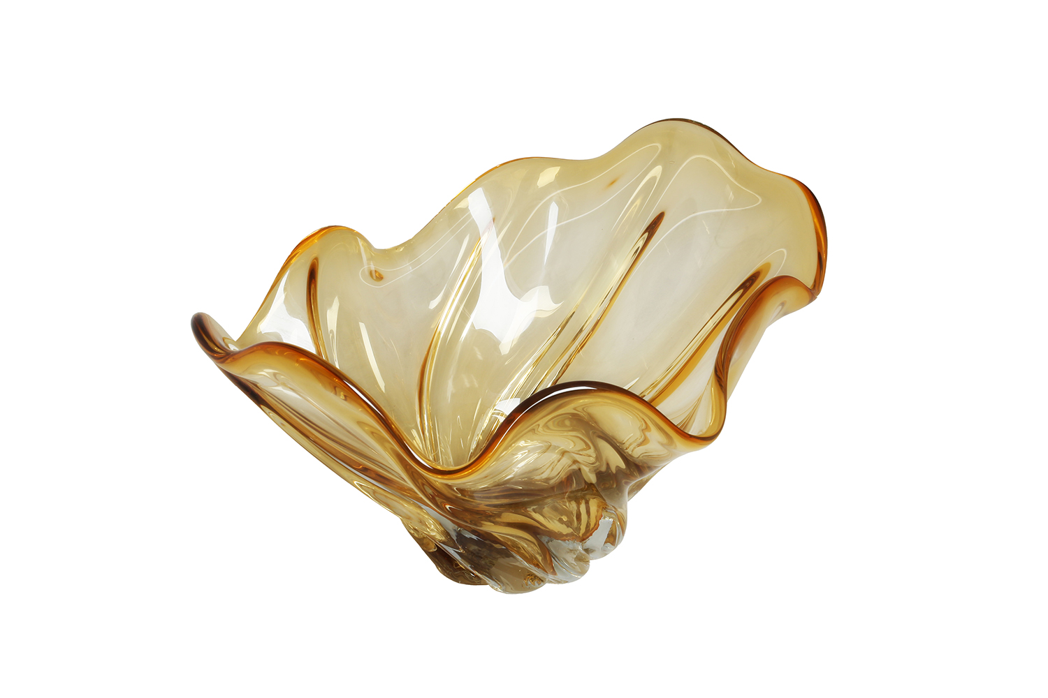 Tabak, içten gelen bir ışıltı yayan bal sarısı (amber) rengindedir. Kenarları dalgalı ve yayvan bir yapıya sahip olup, açılmış bir çiçeği veya deniz kabuğunu andıran organik bir form sergiler. Çukur yapısı, derinlikli bir görsel etki yaratır.