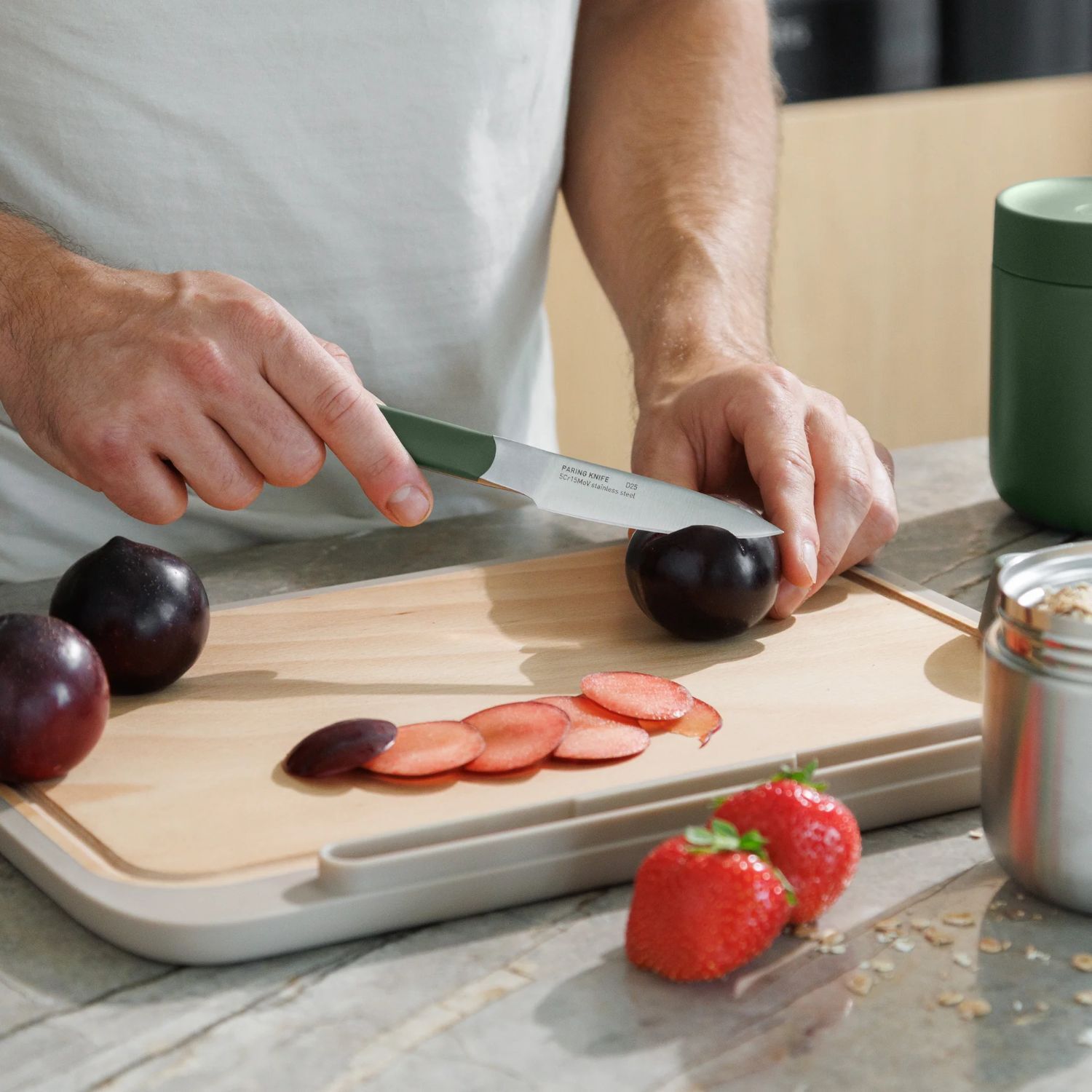 Elements Soyma Bıçağı; meyve ve sebzeleri soymak, düzeltmek ve dilimlemek için mükemmel bir yardımcıdır. Kısa ve son derece keskin bıçak yapısı sayesinde çilekleri temizlemek, arpacık soğanlarını doğramak veya şık garnitürler hazırlamak gibi detaylı işlerde mutfaktaki en büyük yardımcınız olur. Belçika tasarımı olan bu bıçak, kompakt yapısını yüksek performansla birleştirerek günlük mutfak işlerini zahmetsiz hale getirir.