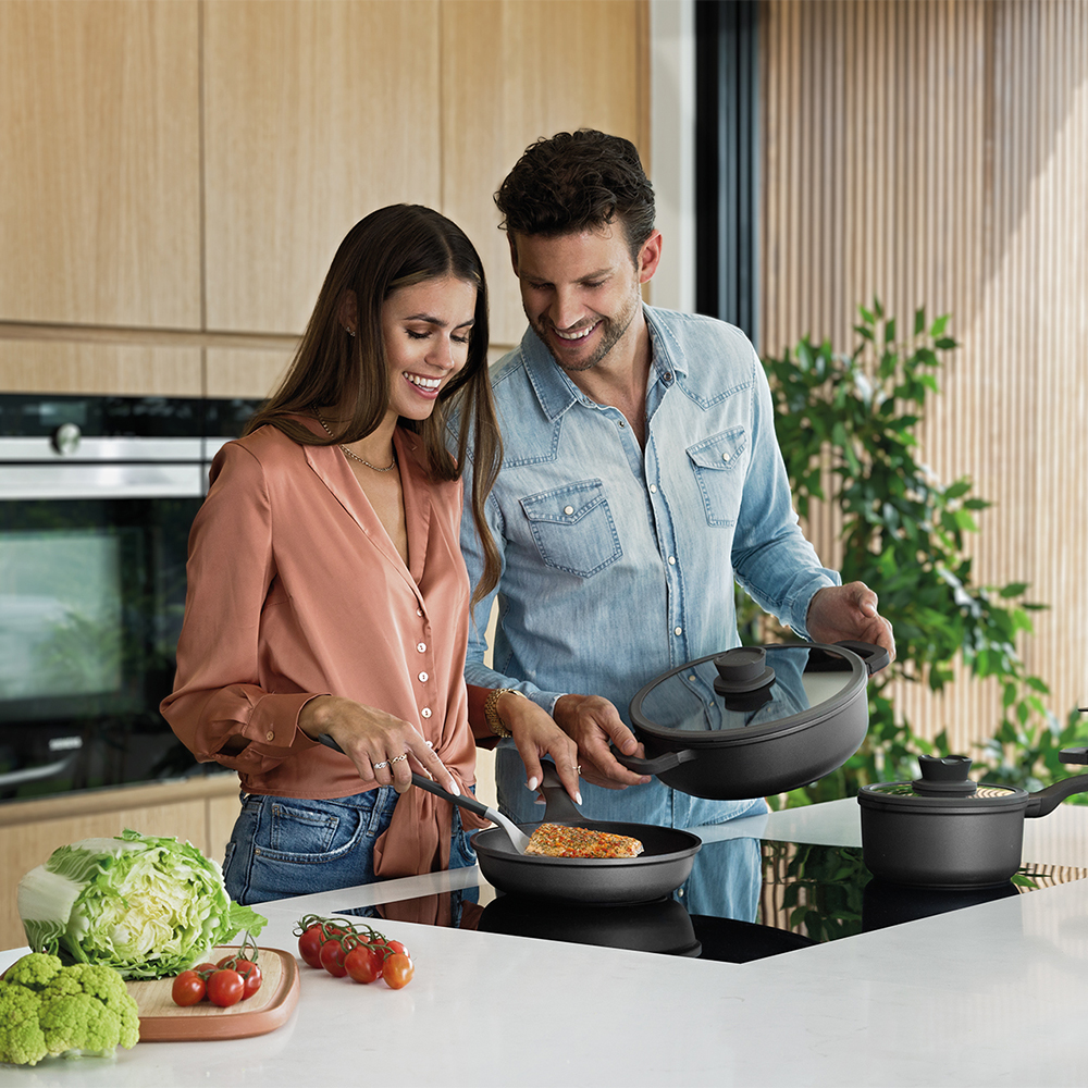 İster hızlı ve kolay bir şeyler hazırlayın, ister ailenizin en sevdiği yemeklerden oluşan bir ziyafet çekin, bu 28 cm'lik kızartma tavasıyla işinizi çabucak halledeceksiniz. Yüksek kaliteli geri dönüştürülmüş alüminyum döküm gövde sadece hızlı ve eşit ısı dağılımı sağlayan ve yiyecekleri kızartmak, sotelemek ve kahverengileştirmek için ideal olan bir tabanla desteklenmez. Aynı zamanda, yiyeceklerin kolayca ayrılmasını sağlayan ve tavanın temizlenmesini çocuk oyuncağı haline getiren çok katmanlı, sağlıklı seramik CeraGreen yapışmaz kaplamaya sahiptir. İndüksiyon ve downdraft sistemleri de dahil olmak üzere her türlü ocakta kullanabilir, tavayı ocaktan masaya veya lavaboya aktarmak istediğinizde rahat ve güvenli bir tutuş için silikon uçlu fenolik sapı tutabilirsiniz.