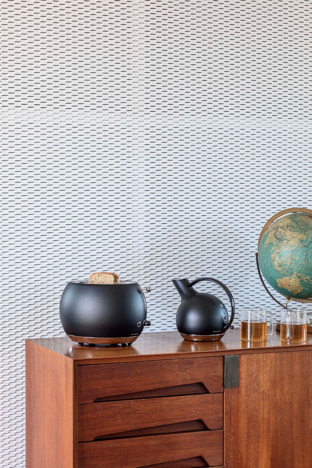 Küre formlu su ısıtıcısı. İkonik bir nesne için mimari ve tasarım referanslarının mükemmel bir birleşimi. Küre her zaman mutlak düzenliliğin sembolü ve simgesi olmuştur; Bugatti'nin yeni elektrikli su ısıtıcısı konseptinin merkezinde yer alıyor: Giulietta, mükemmelliğin sınırlarını zorluyor.