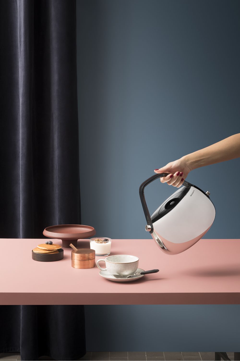 Jackie, tasarım, stil ve fonksiyonların sadeliğini sevenler için elektrikli su ısıtıcısıdır. Yumuşak ve uyumlu şekilleriyle fonksiyonların sadeliğini hatırlatır. Yumuşak ve uyumlu şekilleriyle çok ödüllü Jacqueline akıllı su ısıtıcısını hatırlatır. Zarif ve sofistike şekli, bir çantanın ikonik şeklini hatırlatır ve geleneksel seramik çaydanlıktan ilham alır, çağdaş bir anahtarla yeniden yorumlanır ve tek bir dokunuşla çay hazırlarsınız. Gövde, suyla sürekli temas halinde olan plastik parçalar olmaksızın 18/10 paslanmaz çelikten yapılmıştır. Sap, bir su fışkırmasını anımsatır ve PCT Tritan'dan yapılmıştır.