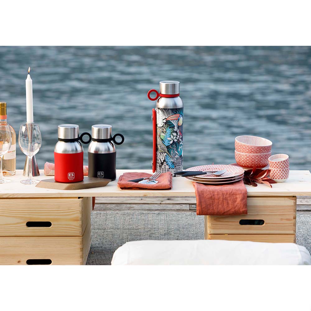 18/10 paslanmaz çelikten yapılmıştır, yiyecek ve sıvıları 12 saat boyunca sıcak, 24 saat boyunca soğuk ve 36 saat boyunca buzlu tutar. Katlanır kaşık, soslar için silindirik kap ve pratik bir bardağa dönüşen rahat bir kapak ile tamamlanmıştır. En iyi kullanıcı deneyimi için yiyecek kutusu ve aksesuarların temizlenmesi ve yeniden doldurulması kolaydır.