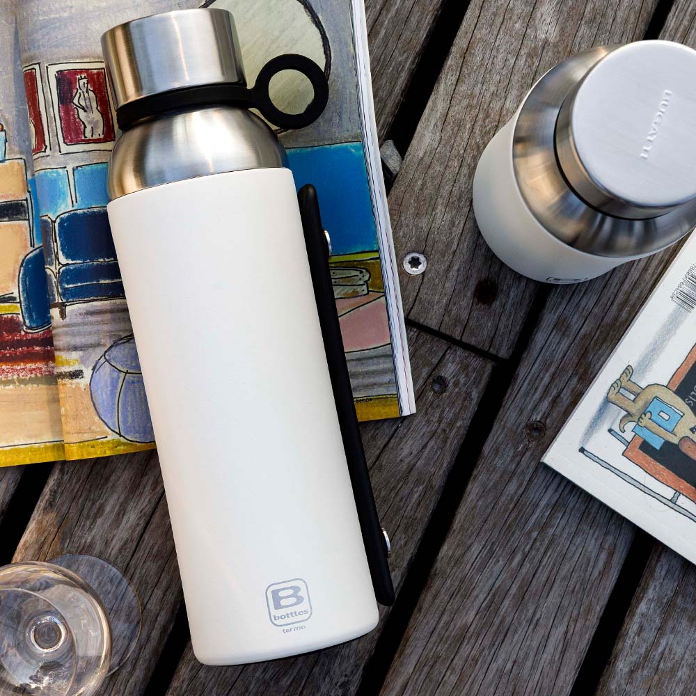 Bugatti Termo, taşıma kulplu paslanmaz çelik mat beyaz , çift cidarlı vakumlu termal şişeyi keşfedin.