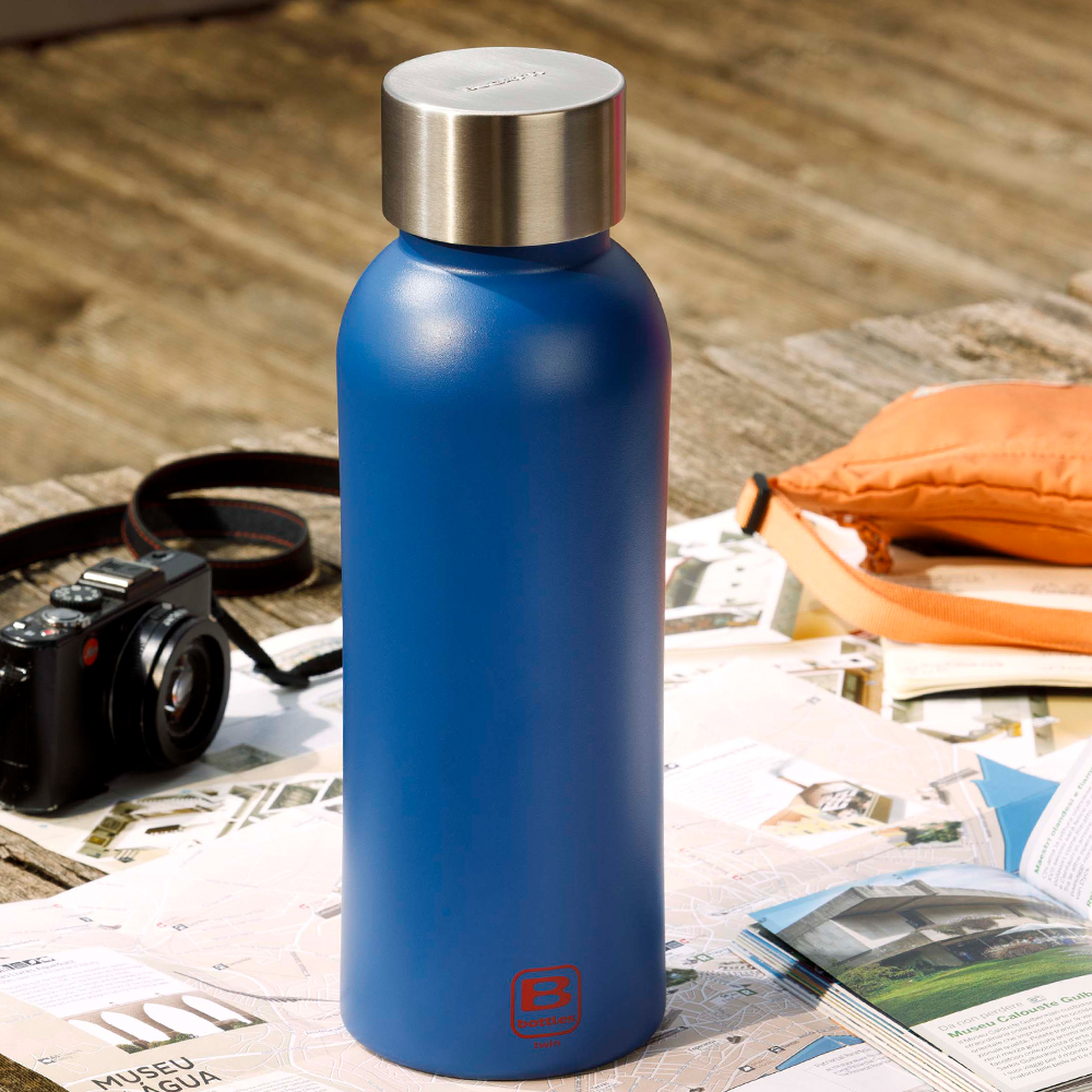 B Bottles Mat mavi rengi , en sevdiğiniz içeceği her zaman yanınızda taşımak için ideal termal su şişesidir. Kavramayı kolaylaştıran ergonomik şekli ile sıcak içecekler için 36 saat, soğuk içecekler için 72 saat ve buz için 120 saat termal tutma için en iyi malzemelerden yapılmıştır. Sizin için doğru olan boyunu seçin.