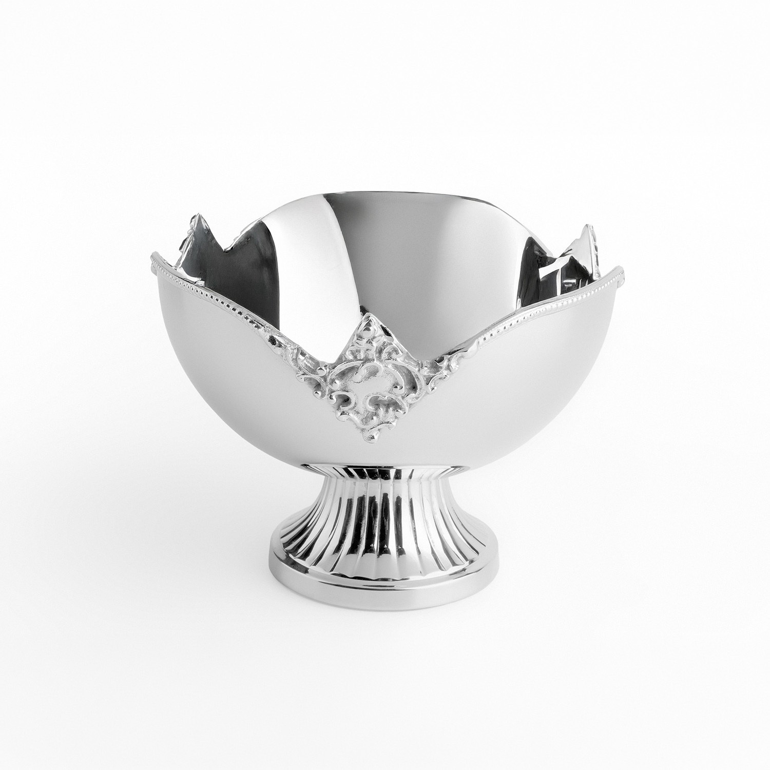 Dekoratif Taç İşlemeli Ayaklı Paslanmaz Çelik Sunum Kasesi 16 cm