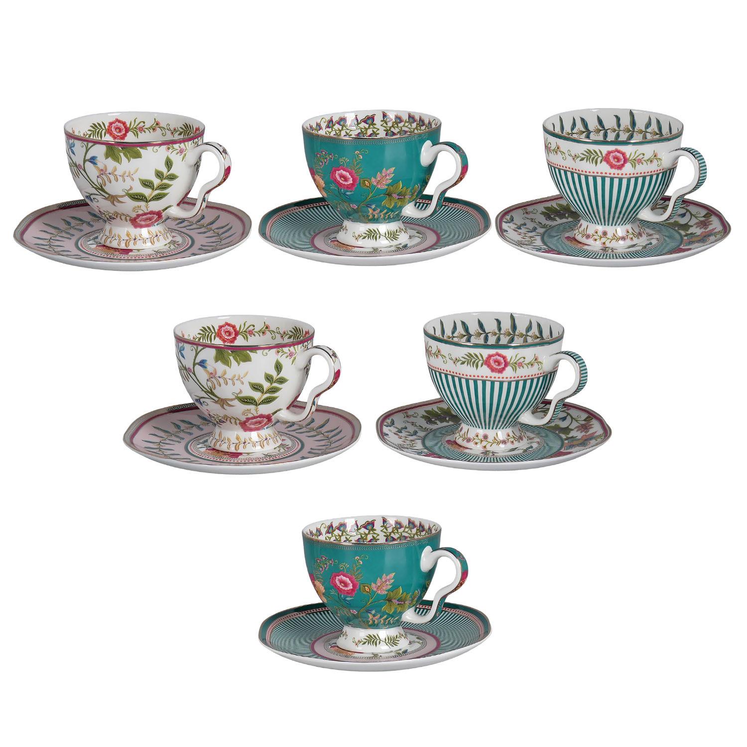 6 Kişilik Tam Set: Şık davetleriniz için 6 adet geniş çay fincanı ve 6 adet uyumlu tabaktan oluşan 12 parçalık prestijli bir settir.
