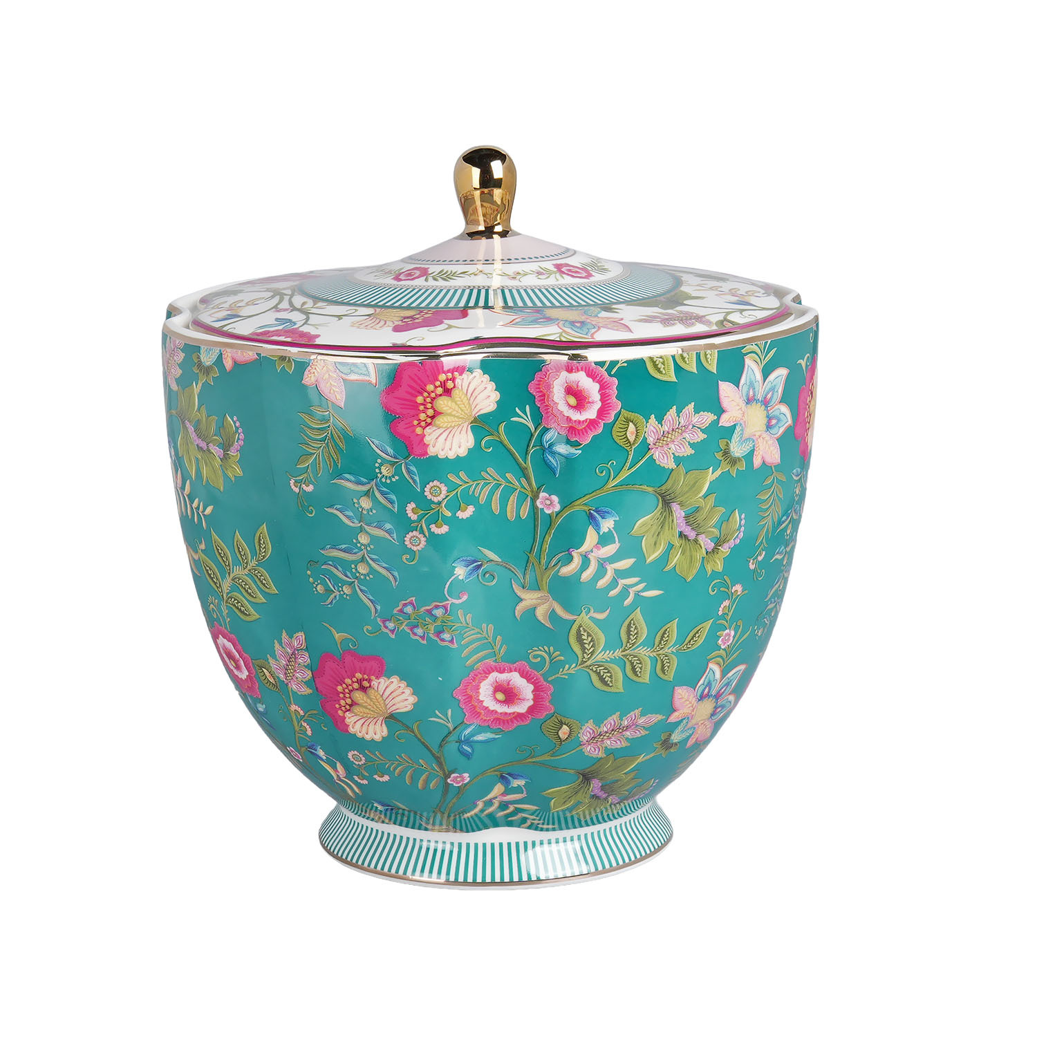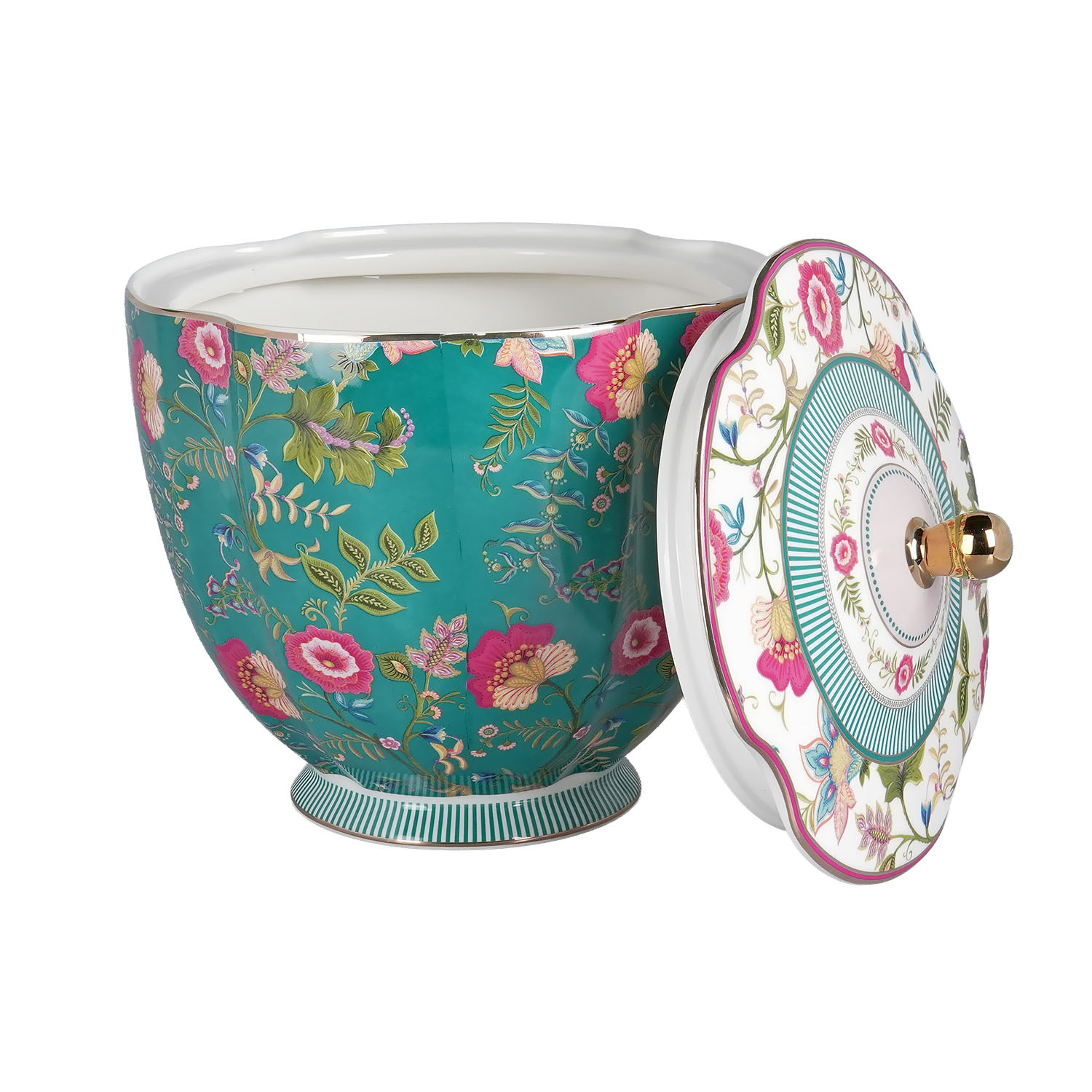 Canlı ve Estetik Tasarım: Turkuaz ve pembe tonların hakim olduğu, altın rengi kapak ucuyla tamamlanan bu özel tasarım, mutfağınıza modern bir şıklık katar.