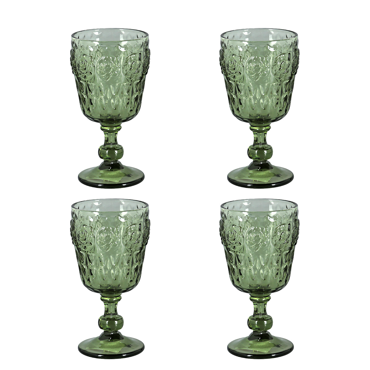 FLORINE 4’lü Cam Kadeh Seti, 310 cc hacmi ve yeşilin doğal tonuyla sofranıza taze ve asil bir hava katıyor. Kabartmalı yüzeyi ve zarif ayaklı tasarımı sayesinde, su, şarap veya kokteyl sunumlarınızı estetik bir keyfe dönüştürür.