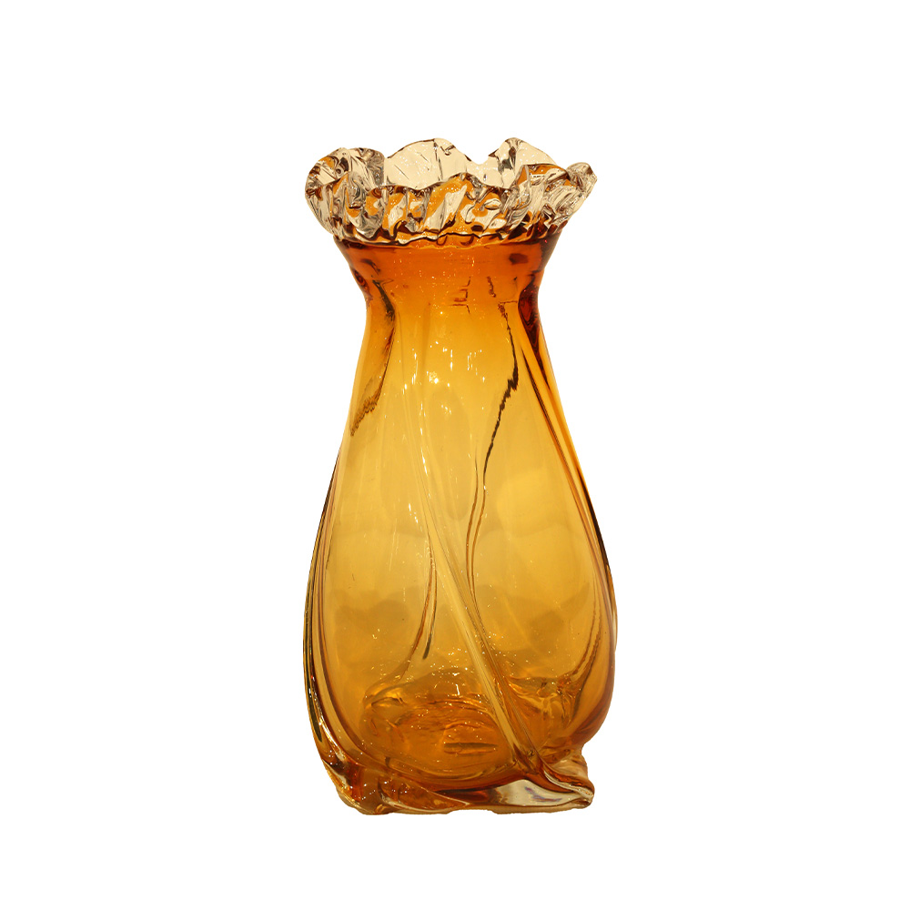 Lucky Art Kahverengi Halkalı Formlu Modern Cam Vazo 32*32*14 - 1
