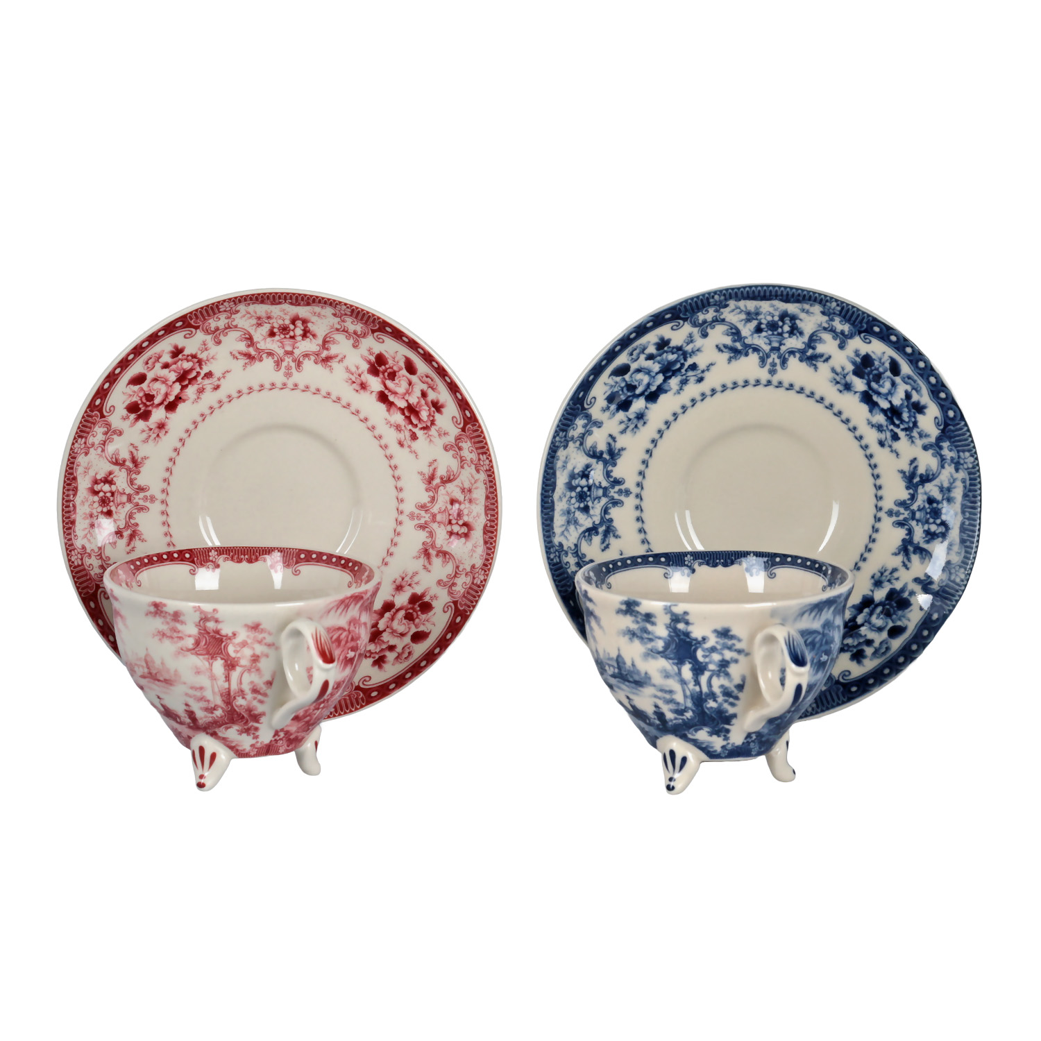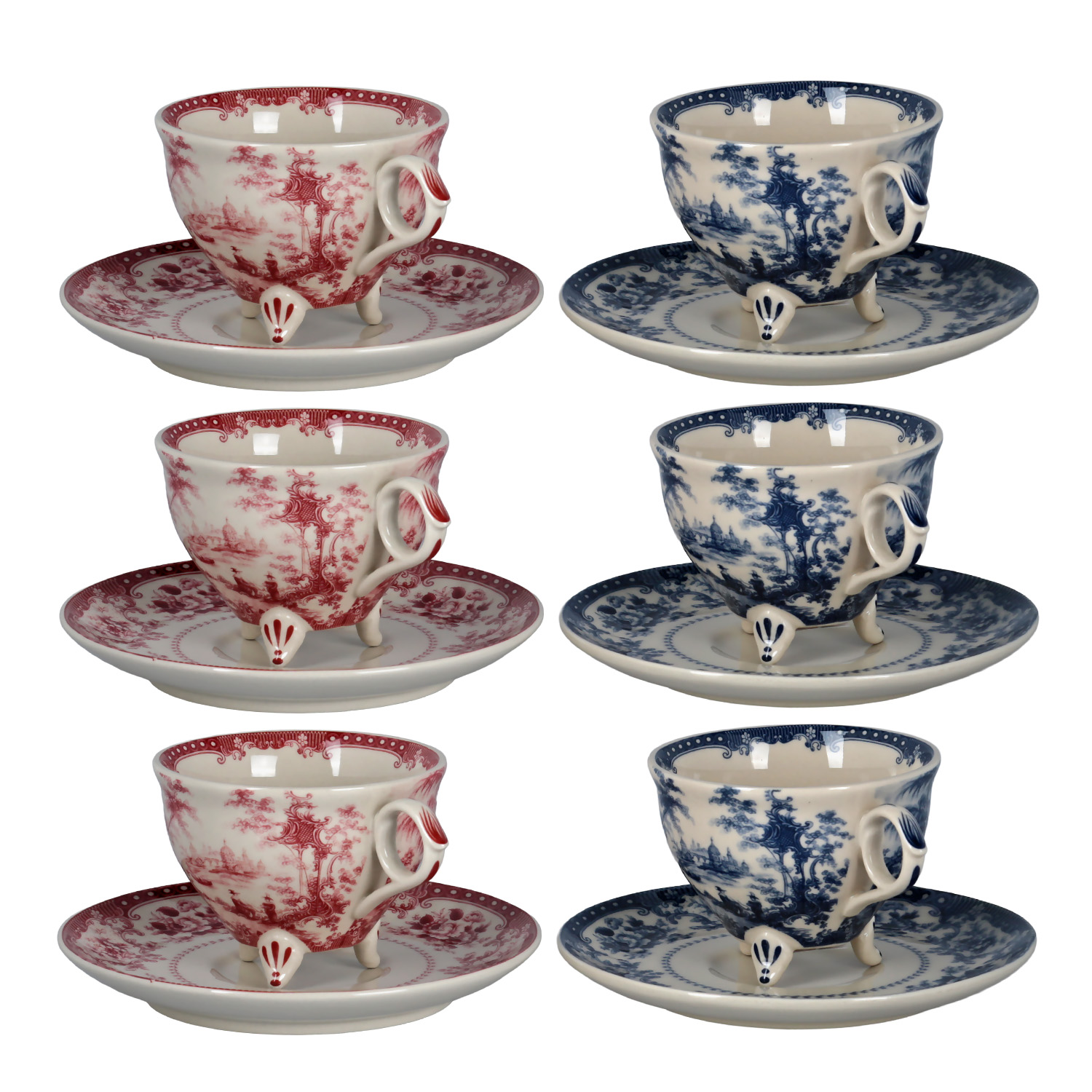 Set İçeriği: 6 adet çay fincanı, 6 adet fincan tabağı (3'ü kırmızı, 3'ü mavi desenli)