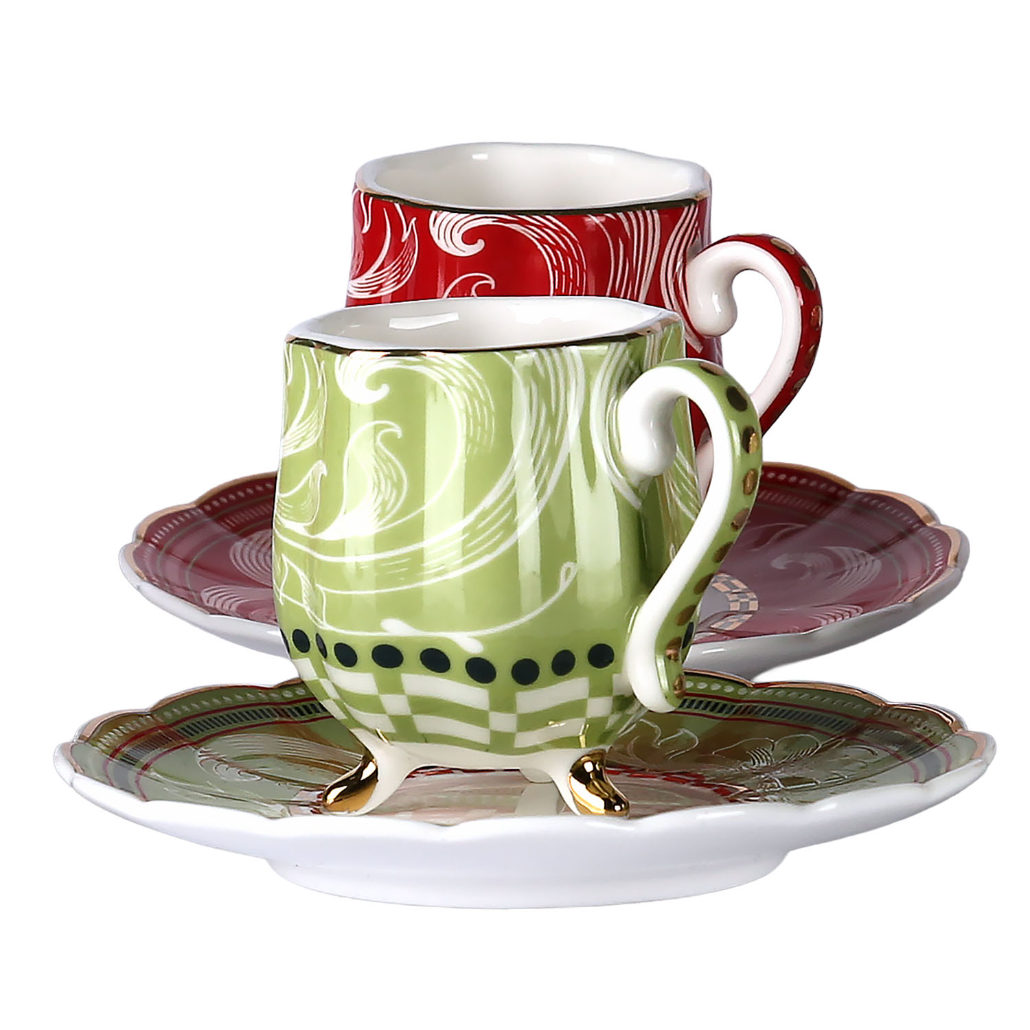 100 cc kapasitesi, geleneksel Türk kahvesi sunumunu mükemmel şekilde tamamlar.Şık tasarımı ve dikkat çekici renkleri, bu seti hem günlük kahve keyfinize hem de özel davetlerinize estetik bir dokunuş katmak için ideal kılar.