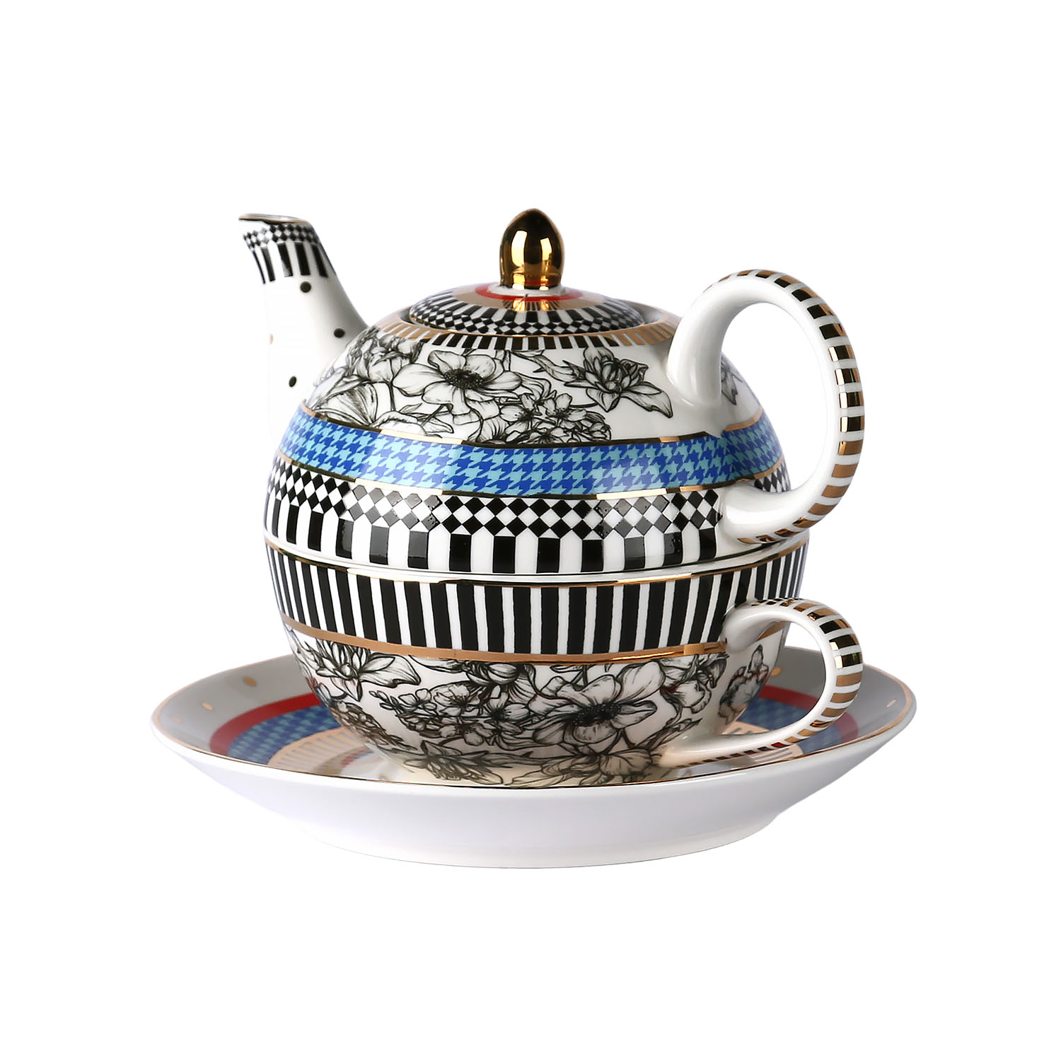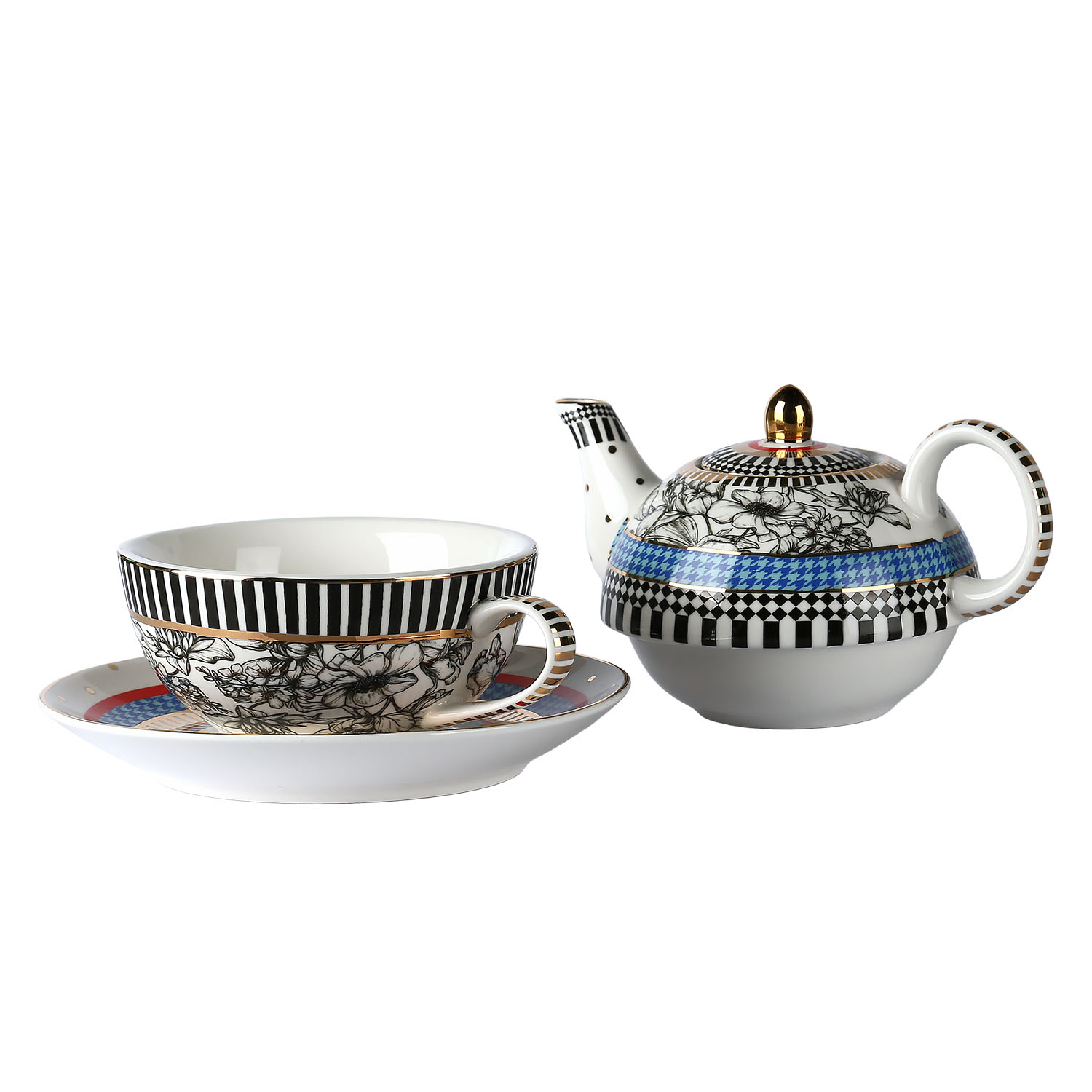 Lucky Art Maggey New Bone China Porselen Demlik ve Fincan Seti el çizimi çiçekler ve zarif kelebek motifleriyle hayat buluyor. Siyah-beyaz detayların enerjik renklerle birleştiği bu koleksiyon, sofistike ve zamansız bir şıklık sunuyor. Sanatsal dokunuşlarıyla her öğünü özel bir deneyime dönüştürüyor. Yüksek kaliteli bone china porselenden üretilmiş bu zarif demlik, özenle seçilmiş desenlerle bezenmiş olup çay saatlerinize zarif bir dokunuş ekler.