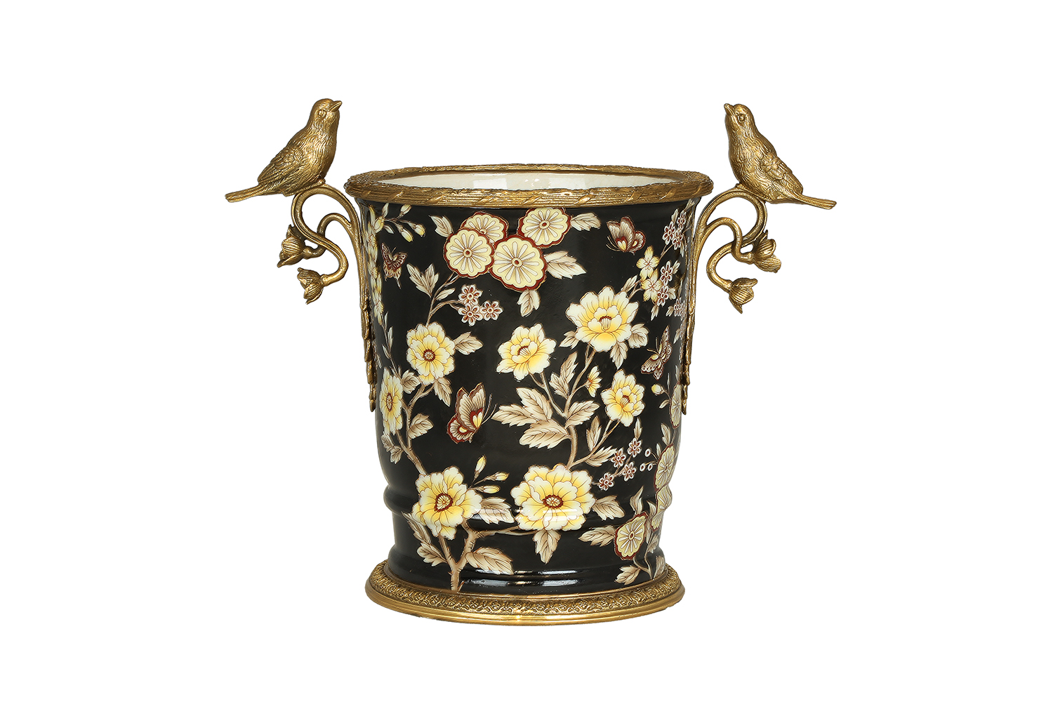 Lucky Art Siyah Cicekli Porselen Vazo 31 Cm