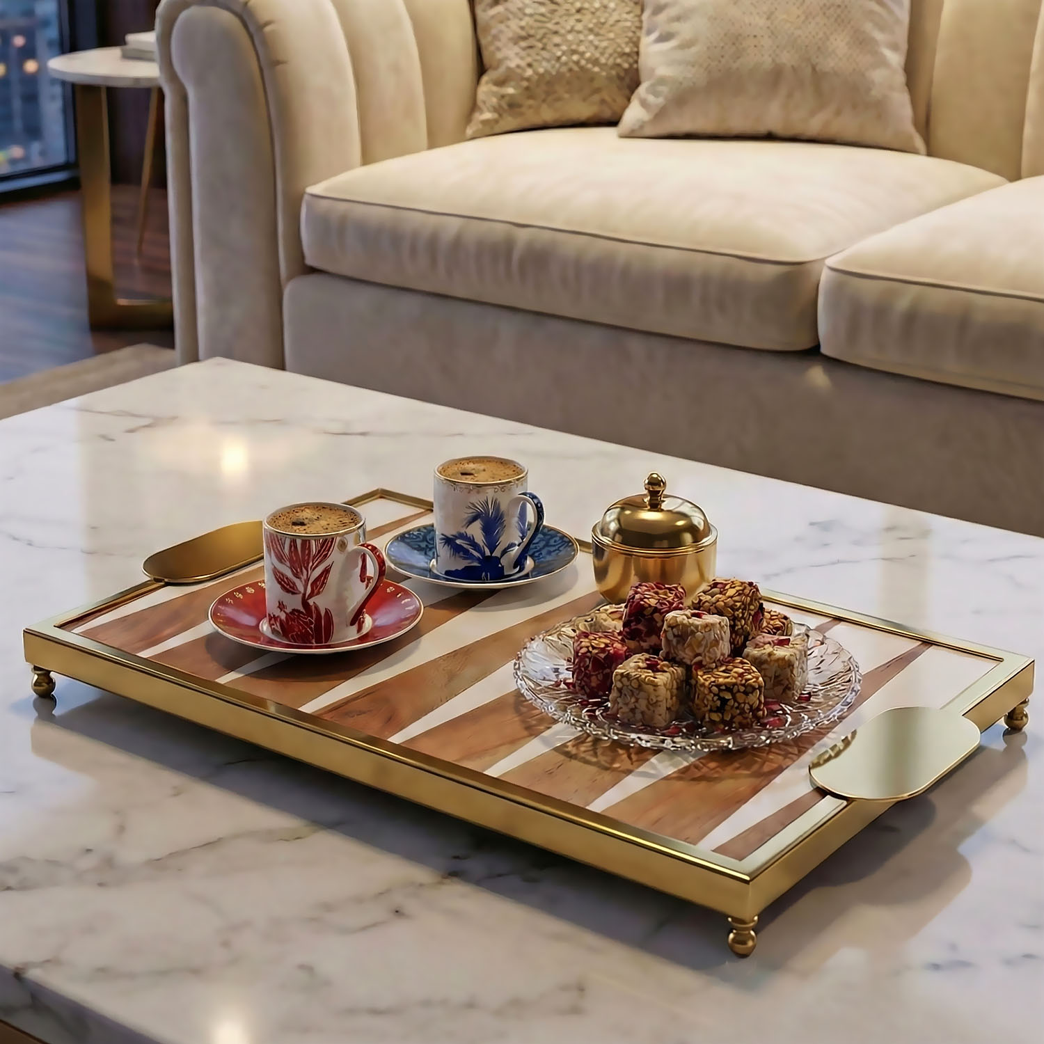 Lucky Art Dikdortgen Krem-Kahve Tepsi 40 Cm - 1Lucky Art Dikdortgen Krem-Kahve Tepsi 40 Cm - 2