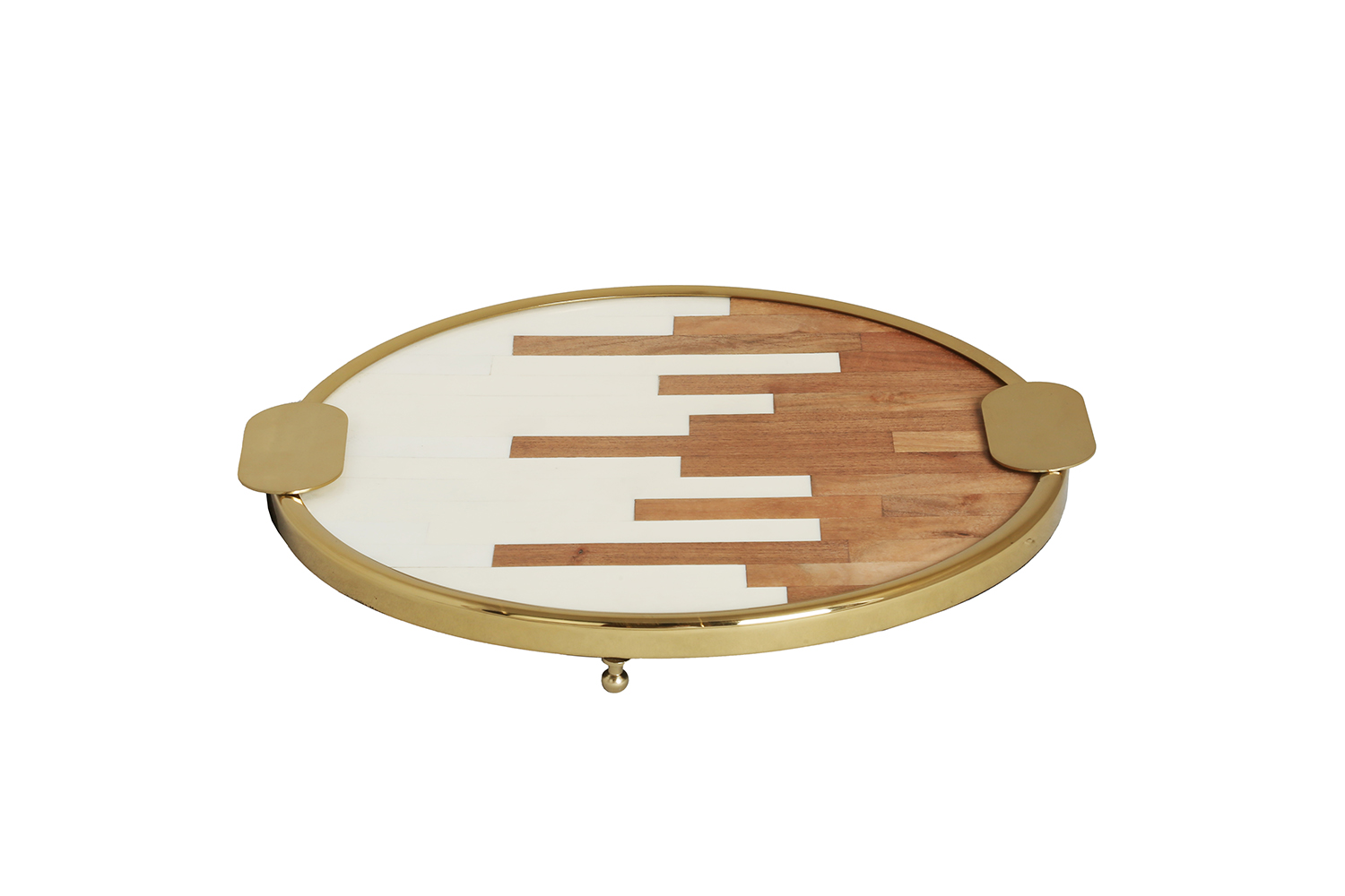 Lucky Art Yuvarlak Krem-Kahve Tepsı 40 Cm