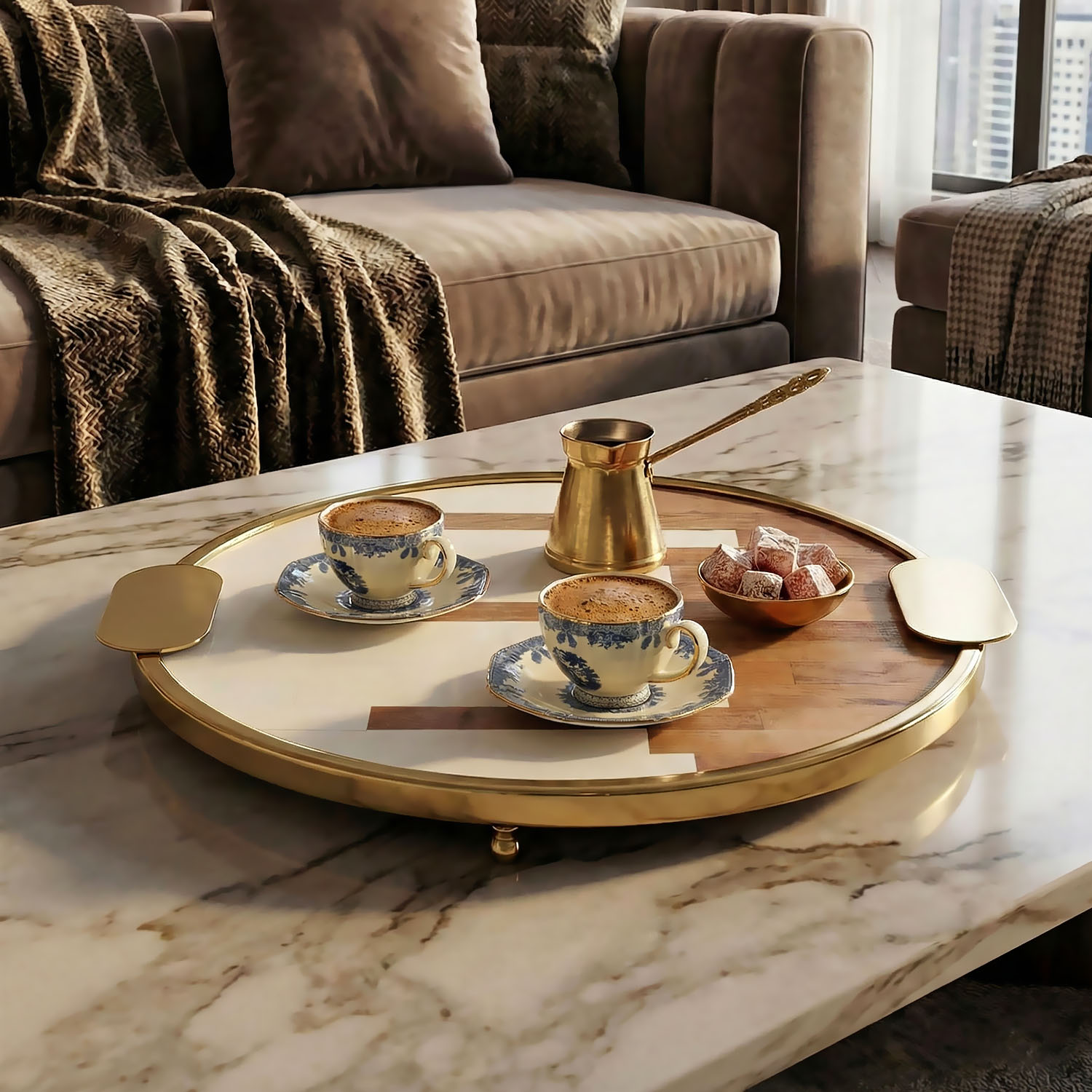 Luckyart Yuvarlak Krem Kahve Tepsi 40cm