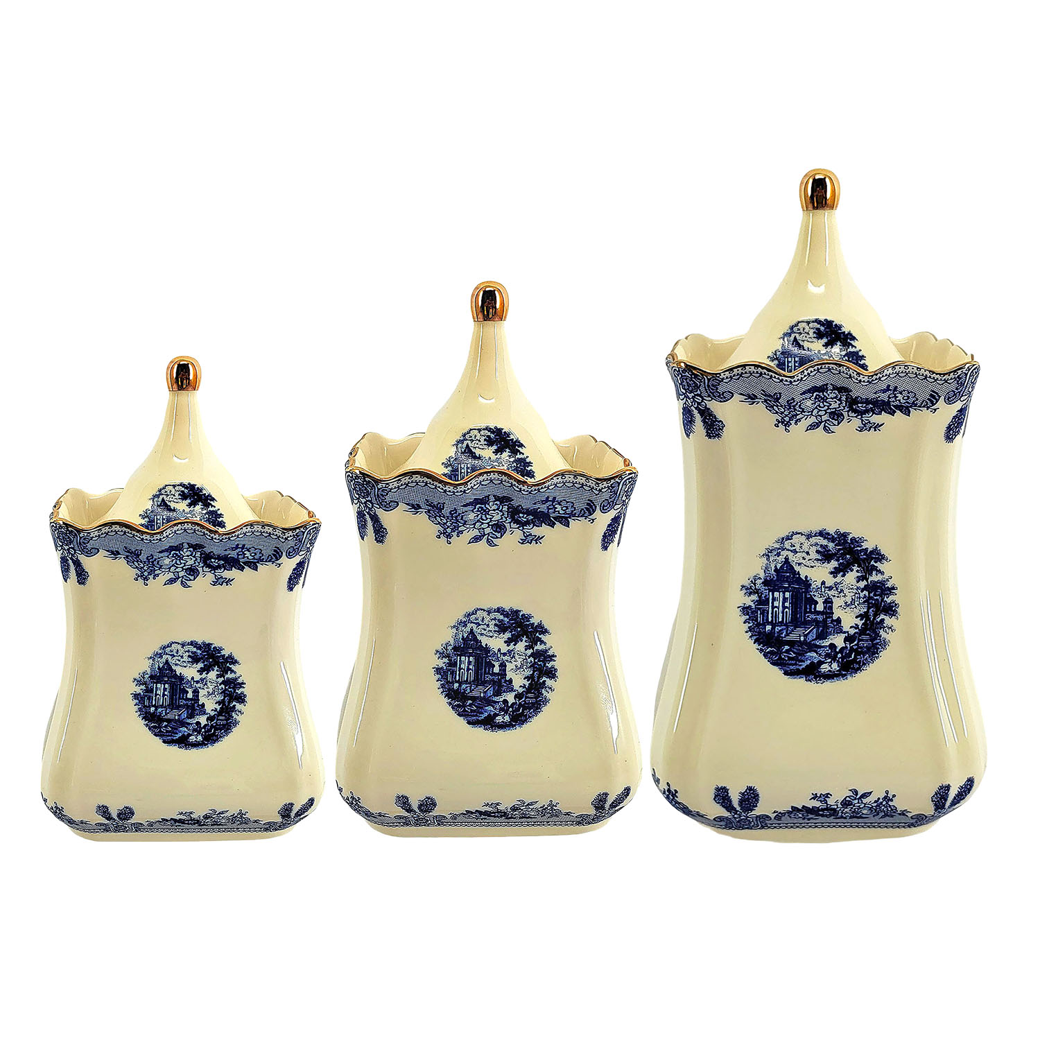 Margaret New Bone 3'lü Kavanoz Seti - Mavi Desenli Şıklık
