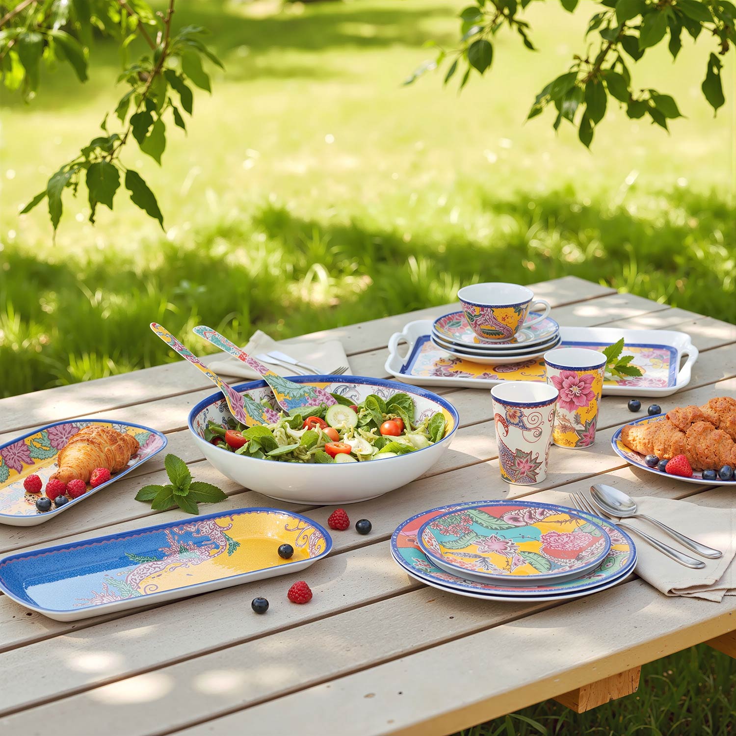 PAISELLE Melamin Baton Tabak Seti ile sunumlarınıza melaminin pratikliğini ve tropikal renklerin şık coşkusunu bir arada getirin.