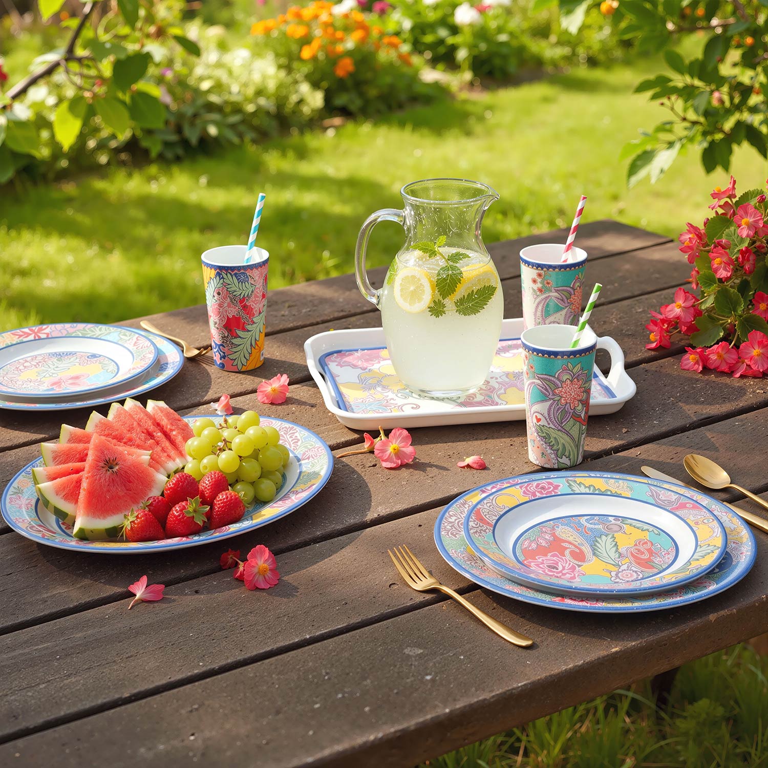 PAISELLE Melamin Tepsi Seti ile servislerinize melaminin pratikliğini ve tropikal renklerin şık coşkusunu bir arada getirin.
