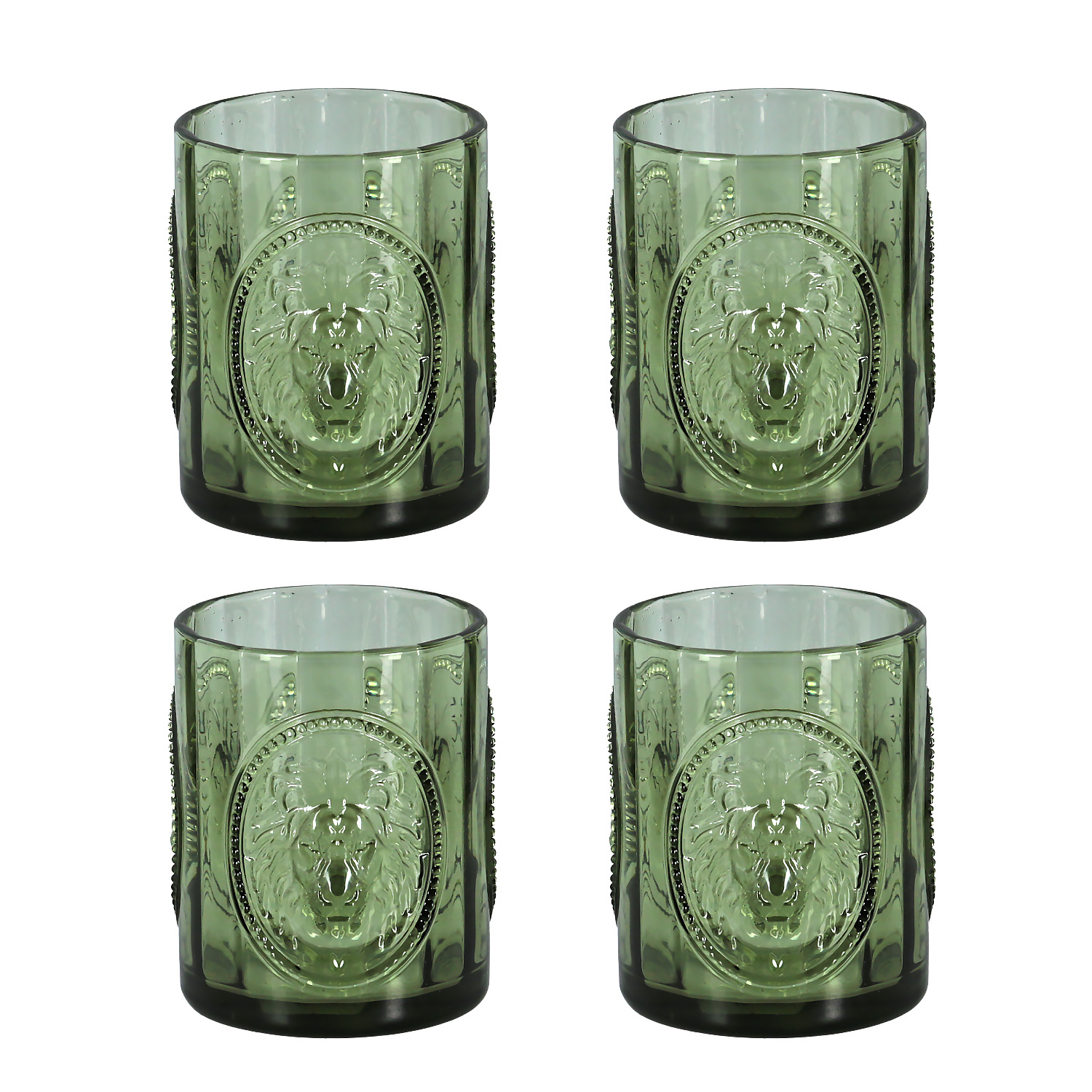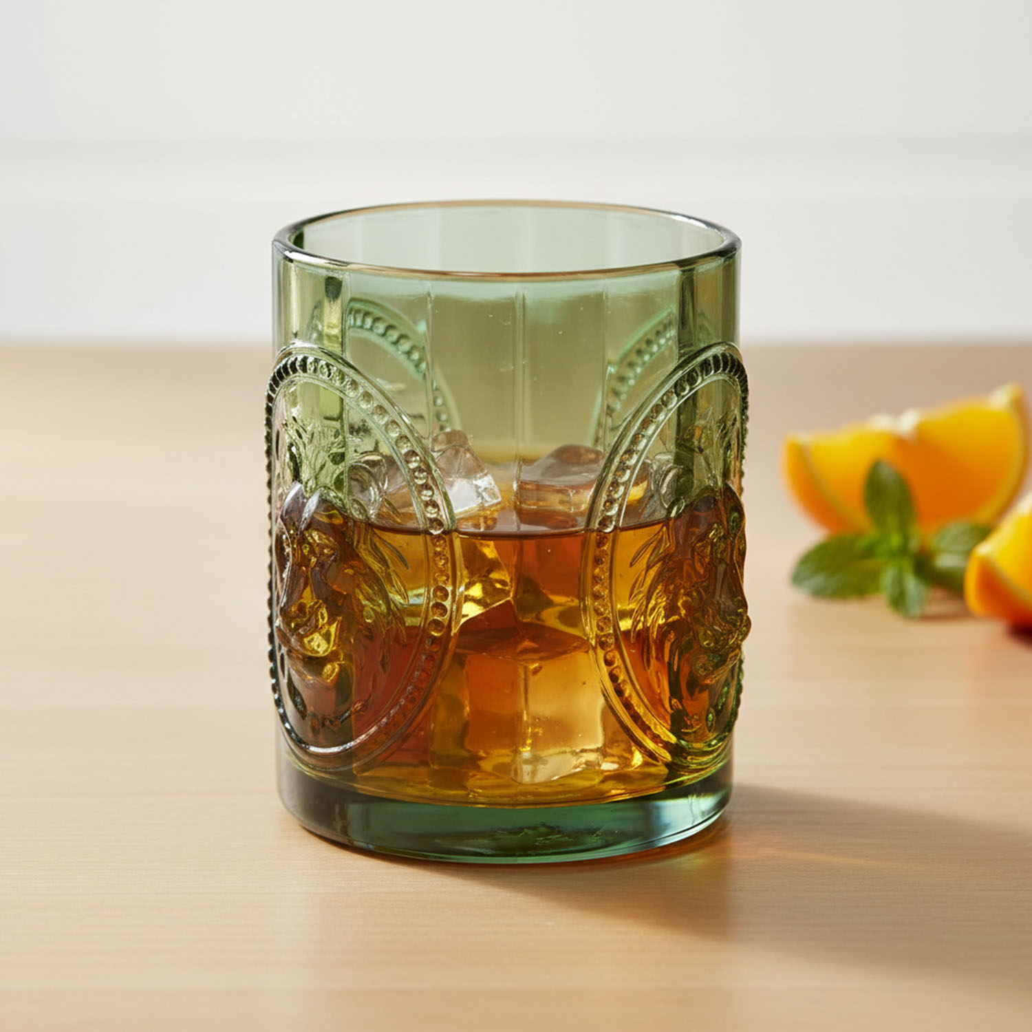 Bardaklar, derin ve tazeleyici yeşil rengindedir. Silindirik formdaki gövdesi, ışığı güzelce yansıtan kabartmalı ve dokulu bir yüzeye sahiptir.