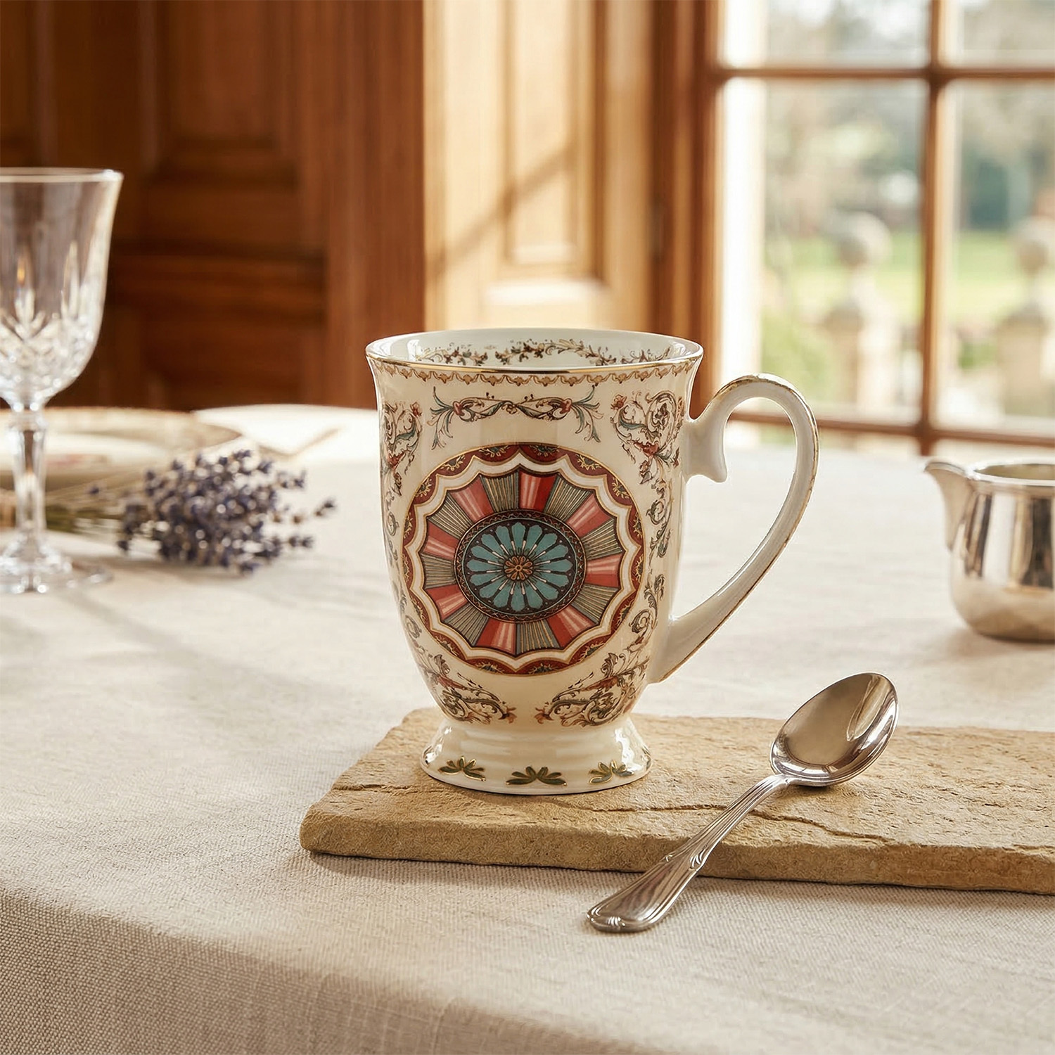 Otantik ve Şık Tasarım: Rosea serisinin kendine has etnik desenleri ve altın yaldızlı detayları, kupanın zarif formuyla birleşerek masanızda seçkin bir saray şıklığı yaratır.