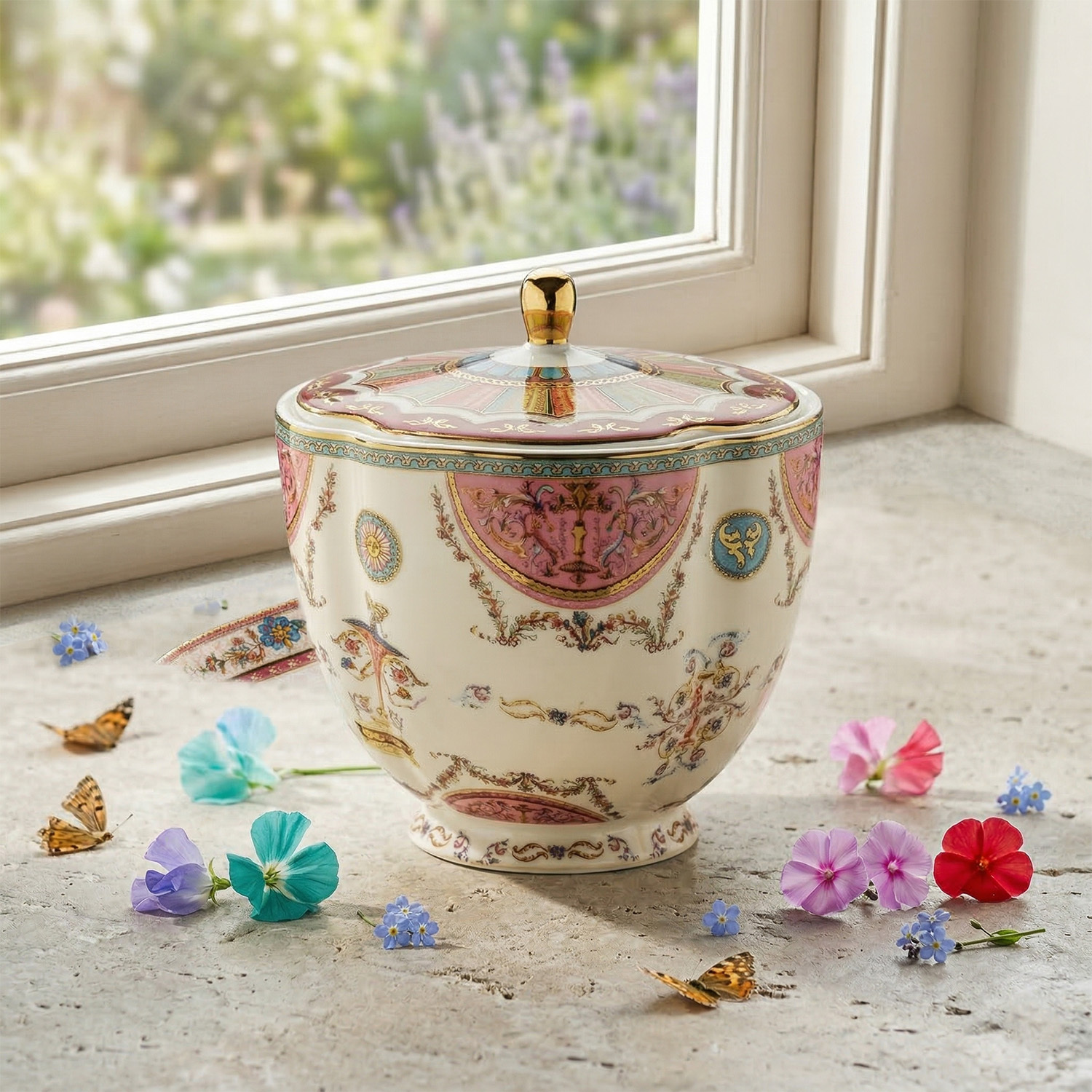 Sofralarınıza zarafet katacak Rosea Bone serisi ile tanışın! Yüksek kaliteli porselen yapısı, geleneksel motiflerin sıcak renklerle harmanlandığı özel tasarımı ve altın yaldızlı detaylarıyla mutfağınızın vazgeçilmezi olacak bu orta boy kavanoz, hem estetiği hem de fonksiyonelliği bir arada sunuyor.