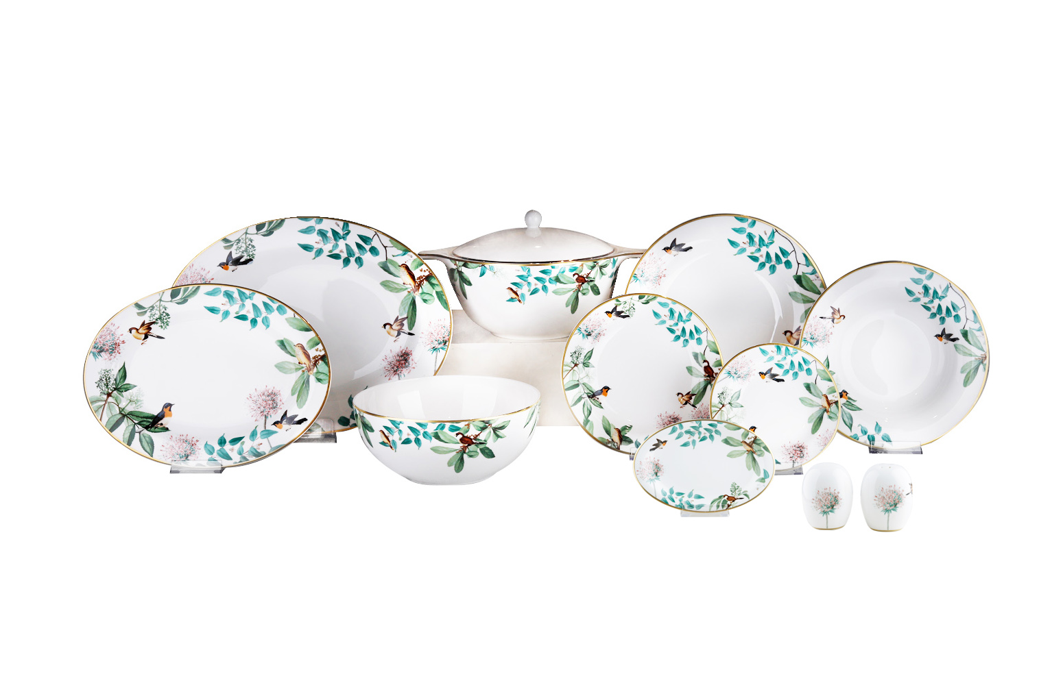 Doğal bileşenleri sayesinde kendine has krem rengi, pürüzsüz dokusu, göz alıcı desenleri ile Royal Canterbury yemek takımları; uzun yıllar boyunca en özel sofraları hazırlamanız, en kıymetli misafirleri ağırlamanız için üretildi.
