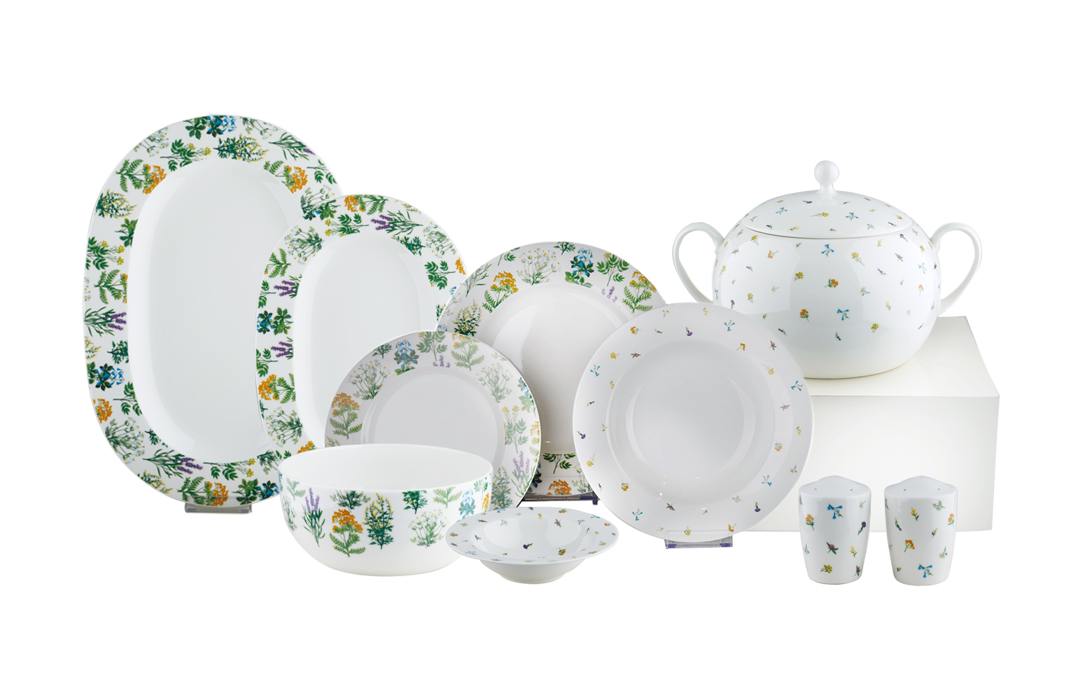 Doğal bileşenleri sayesinde kendine has krem rengi, pürüzsüz dokusu, göz alıcı desenleri ile Royal Canterbury yemek takımları; uzun yıllar boyunca en özel sofraları hazırlamanız, en kıymetli misafirleri ağırlamanız için üretildi.