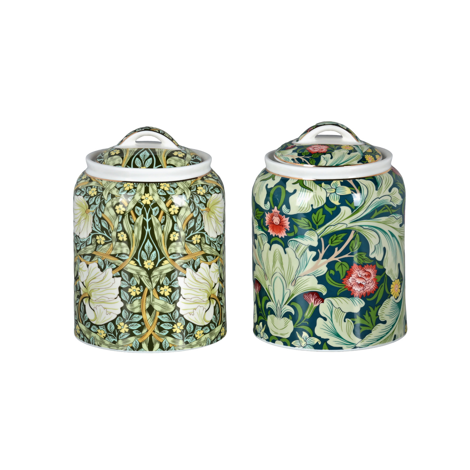 Her iki kavanozun kapağı da ana gövde deseniyle uyumludur.