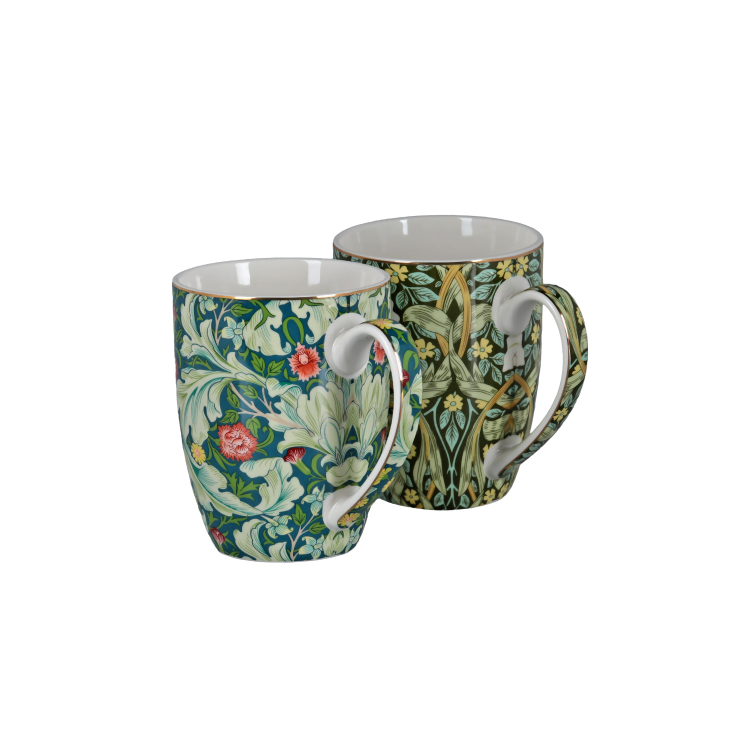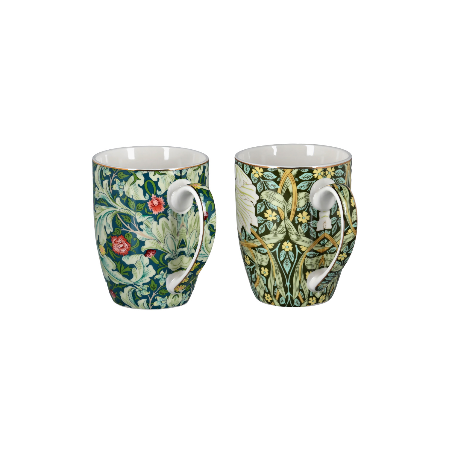 Set, farklı yeşil tonlarında, narin yapraklar ve kırmızı/pembe meyvelerle bezeli iki ana desenden oluşur. Biri daha yoğun ve koyu yeşil motiflere sahipken, diğeri daha açık, sarımsı yeşil tonlardaki yapraklarla doludur. Her iki kupa da doğal bir uyum sergiler.