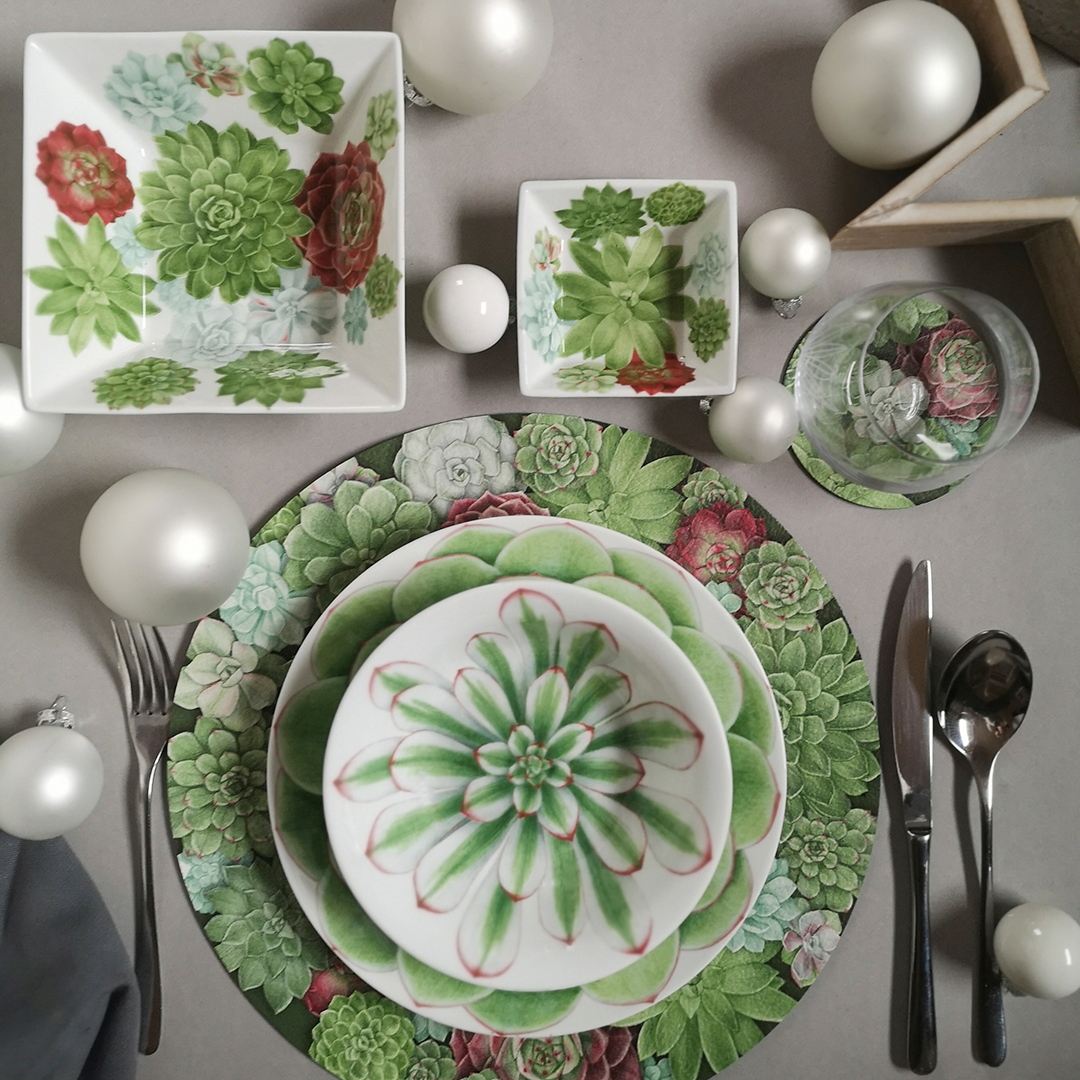 DESERT ROSE koleksiyonu; değerlilik, özgünlük ve koruma temalarını TAITÙ’nun karakteristik tarzıyla kutluyor. Sukulent bitkilerini yukarıdan bakıldığında zengin tonlu taç yapraklarına benzeyen pastel renkli "güllere" dönüştüren bu özel seri, sofralara sofistike bir hava katar. Toz pembeden açık maviye ve koyu kırmızıya uzanan armonik renk paleti, doğanın mükemmel formlarını benzersiz geometrik desenlerle birleştirerek yıl boyu kullanım için ideal bir zarafet sunar.