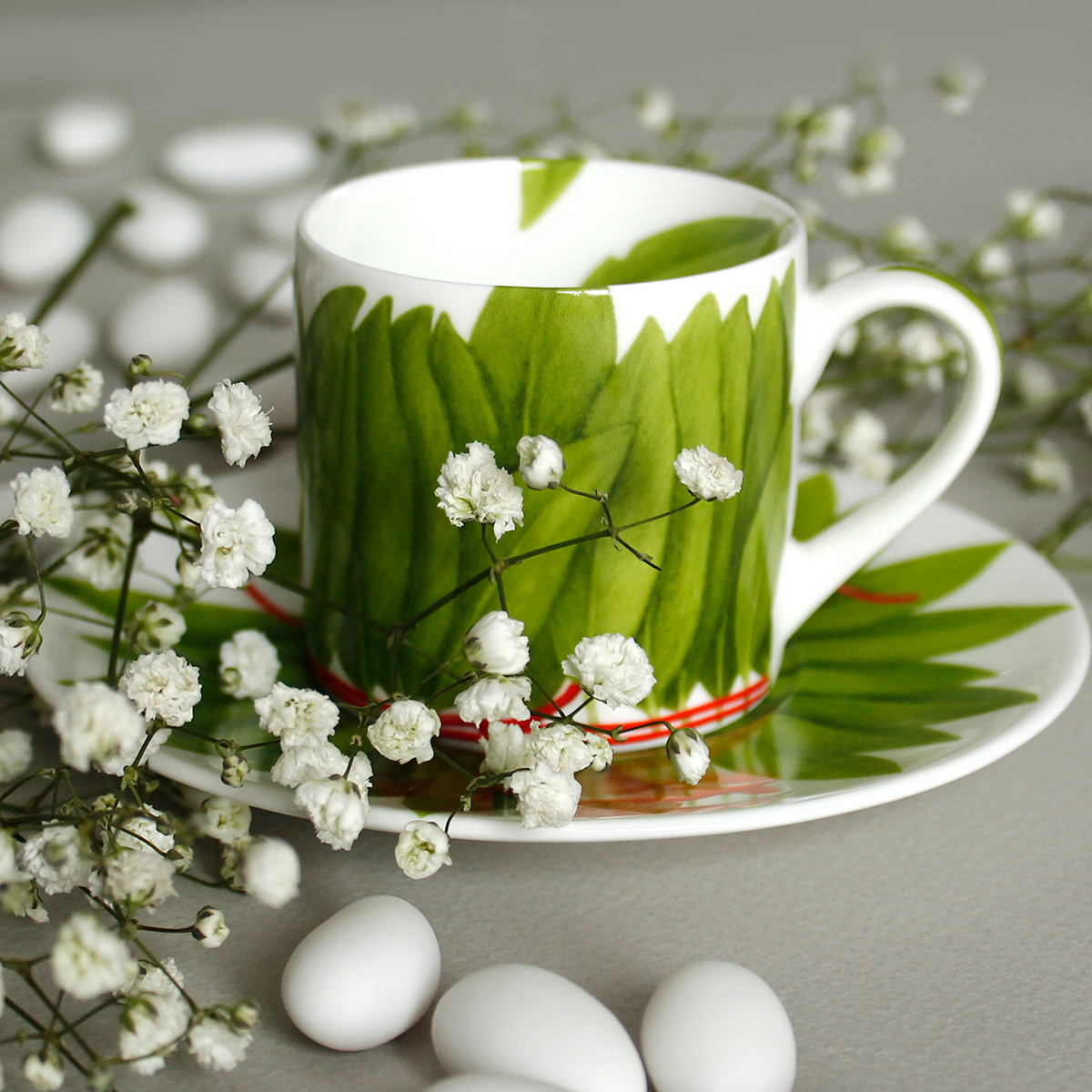 Çap (Diameter): Bardak 6 cm, Tabağı 12.5 cm