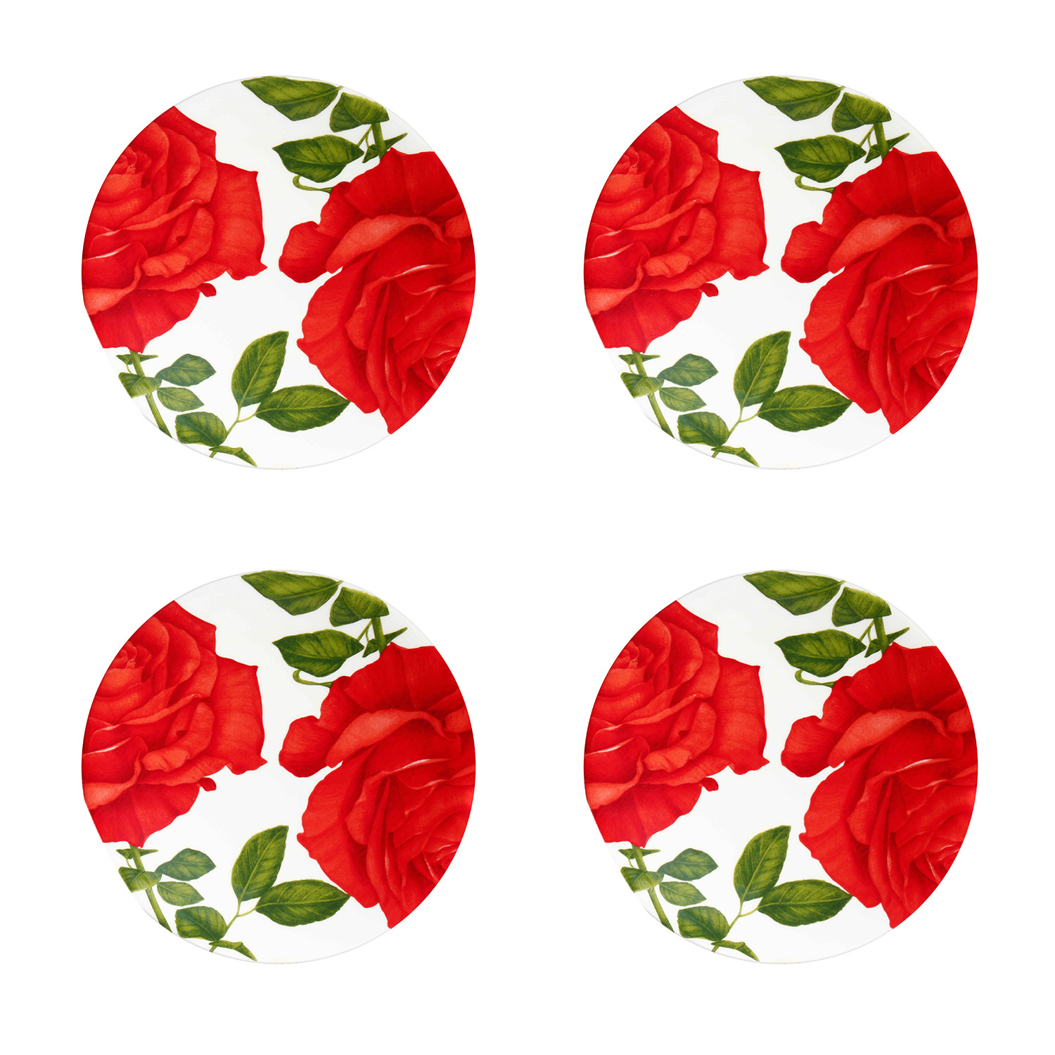 Sanatsal Temalar: Tabak yüzeyini saran büyük ve canlı kırmızı gül motifleri, sofranıza tutku dolu ve enerji veren bir estetik katar.