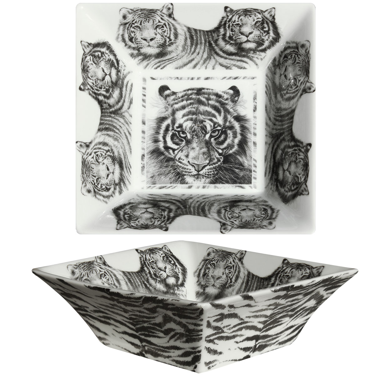 WILD SPIRIT koleksiyonu, siyah ve beyaz tonlardaki kaplan, leopar, zebra ve zürafa gibi vahşi hayvanların desenlerini birleştirerek özgür ve ilkel ruhunuzu serbest bırakır. Bu orijinal yaratıcılık, bireysel hayvanların "yakın çekimlerinden" başlar ve optik geometrik bir "dokuyu" andıran desenlere doğru evrilir.