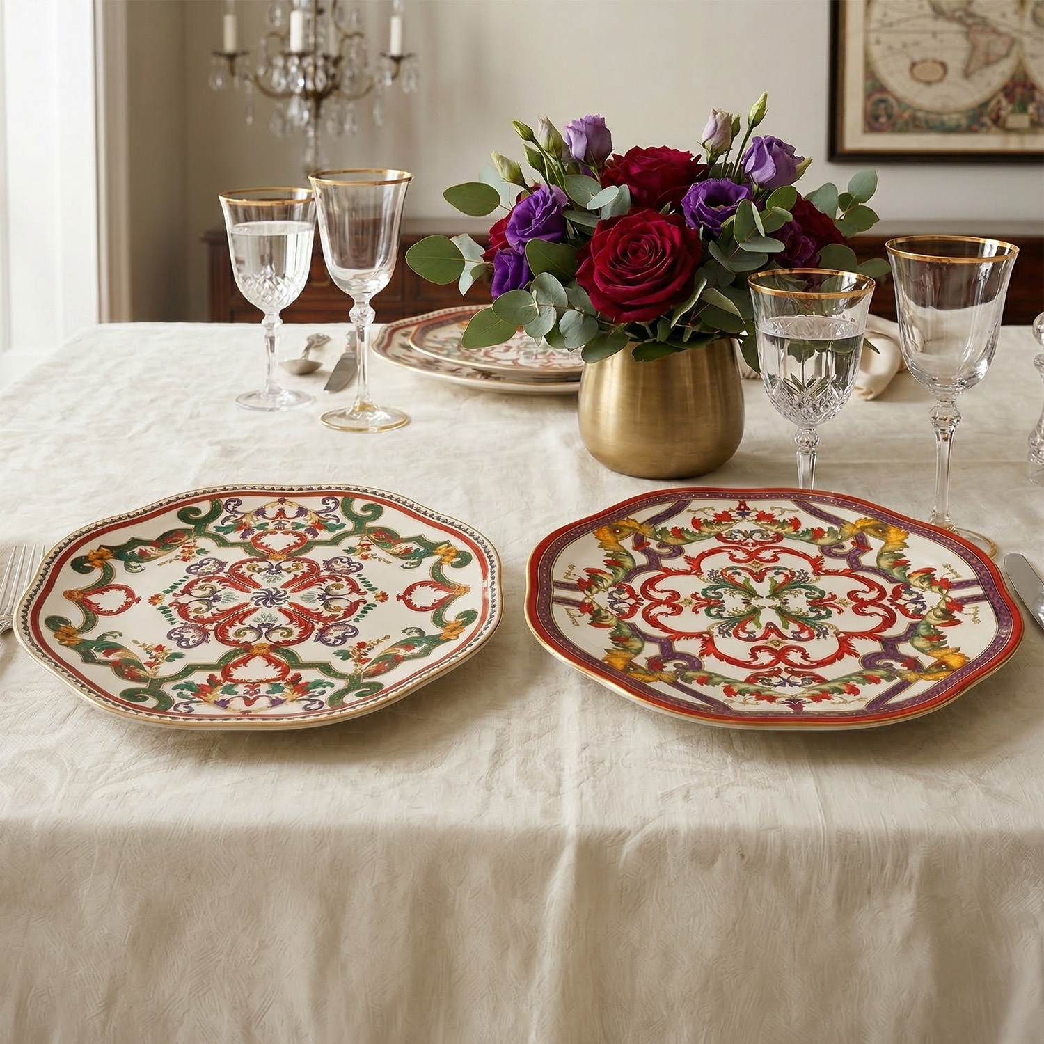 Şık ve Karakteristik Tasarım: Velora serisinin ikonik desenleri ve kenar detayları, sofranızda klasik bir saray şıklığı yaratarak sunumlarınızı görsel bir şölene dönüştürür.