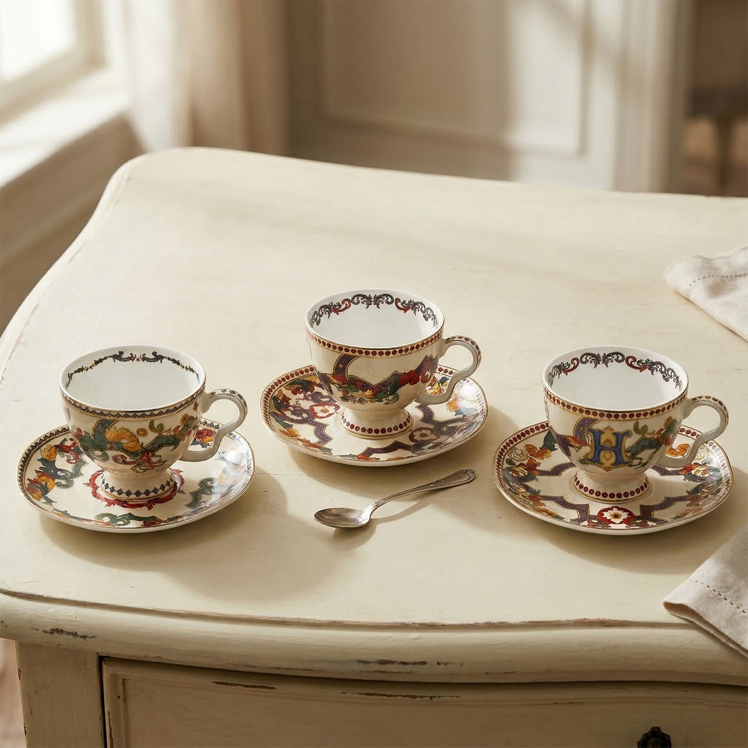 Sofralarınıza zarafet katacak Velora Bone serisi ile tanışın! Yüksek kaliteli porselen yapısı ve klasikleşmiş zengin motifleriyle çay saatlerinizin vazgeçilmezi olacak bu 12 parçalık set (6 fincan + 6 tabak), hem estetiği hem de fonksiyonelliği bir arada sunuyor.