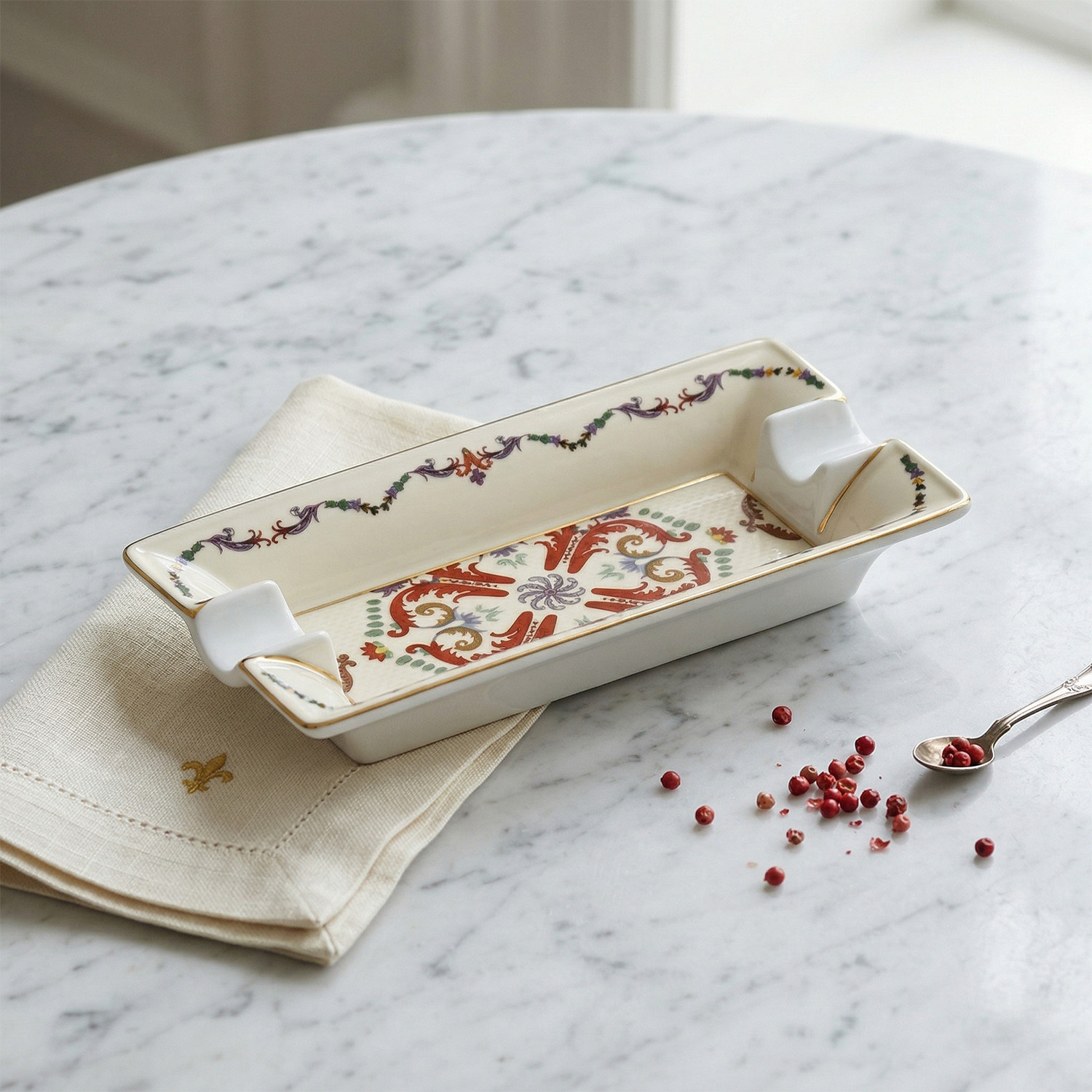 Geniş Dikdörtgen Form: 19 cm uzunluğu ve 10 cm genişliği ile standart modellerden daha geniş bir yüzey alanı sunar. Derin iç yapısı ve özel kesim sigara yuvaları kullanım konforu sağlarken, porselenin kolay temizlenebilir yapısı sayesinde koku hapsetmez.