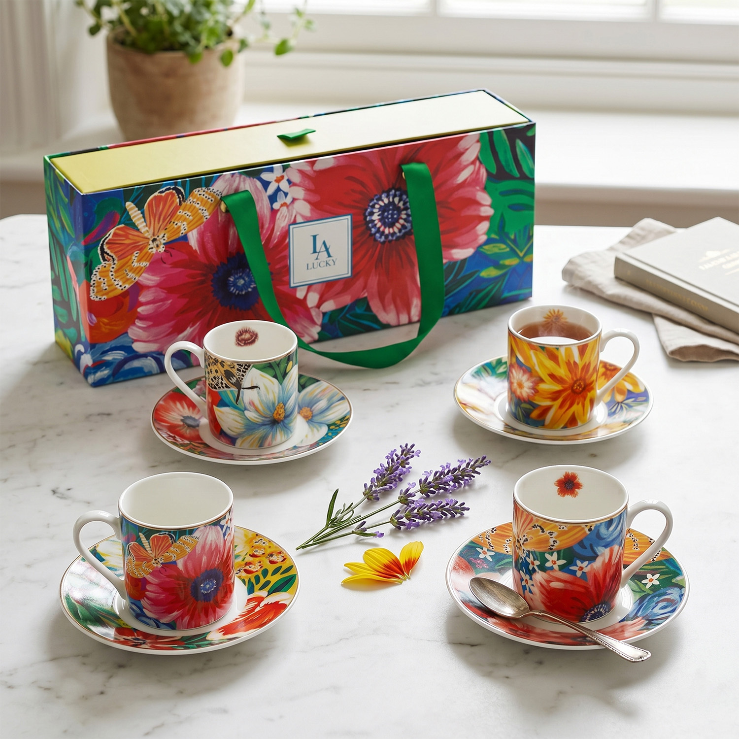 Paket İçeriği: 4 Adet Fincan + 4 Adet Fincan Tabağı + Özel Tasarım Hediye Kutusu