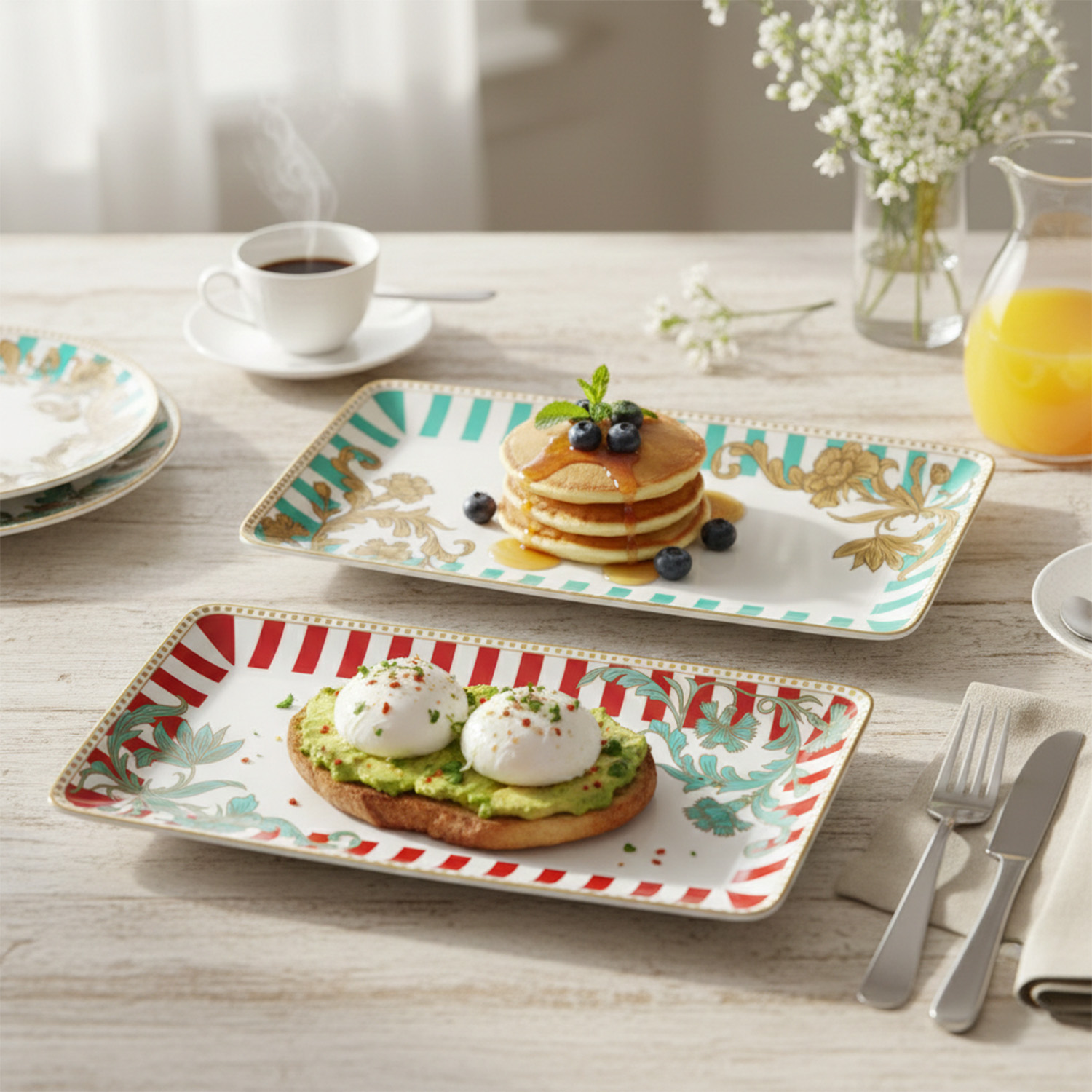Set İçeriği: 2 adet dikdörtgen (baton) servis tabağı.